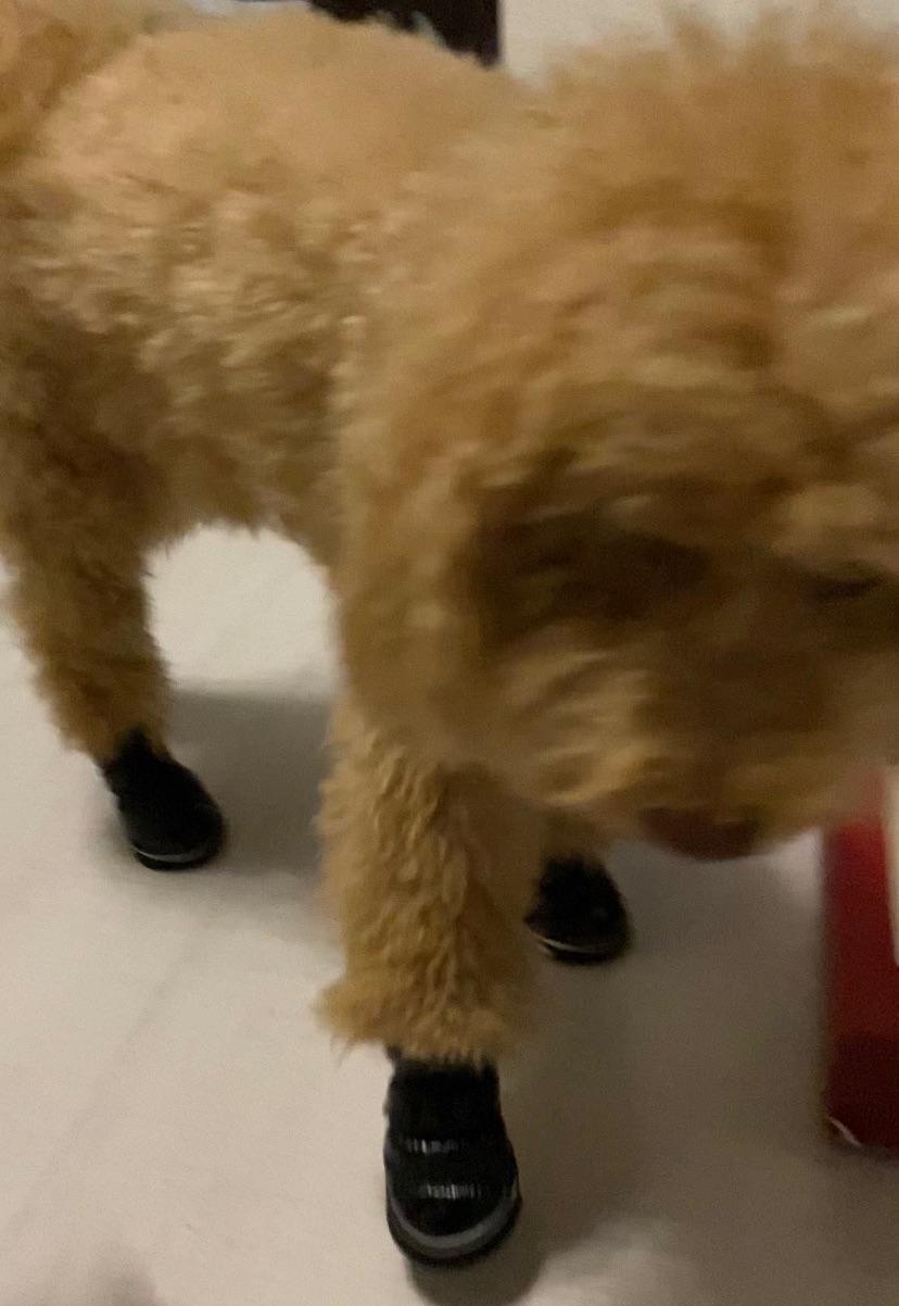 Одели и сразу побежали, прыгает, бегает, не скользят на льду. Внешне наша любимка довольна. Одна из немногих моделей, которые не надо после прогулки ходить искать) Для защиты лапок от реагента покупали много моделей, но то крутятся/переворачиваются на лапке, то слетают, этой моделью очень довольны, не слетают даже после сугробов, в которые мы любим залезть.Комментарий
