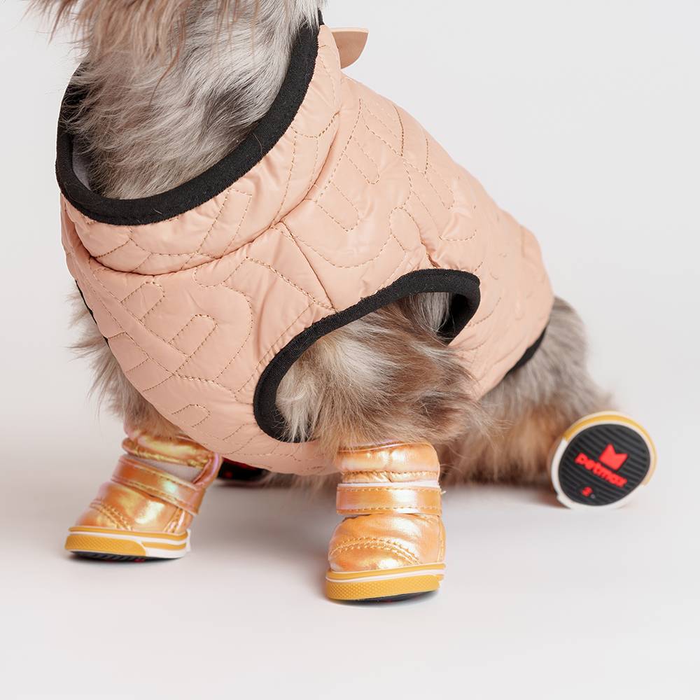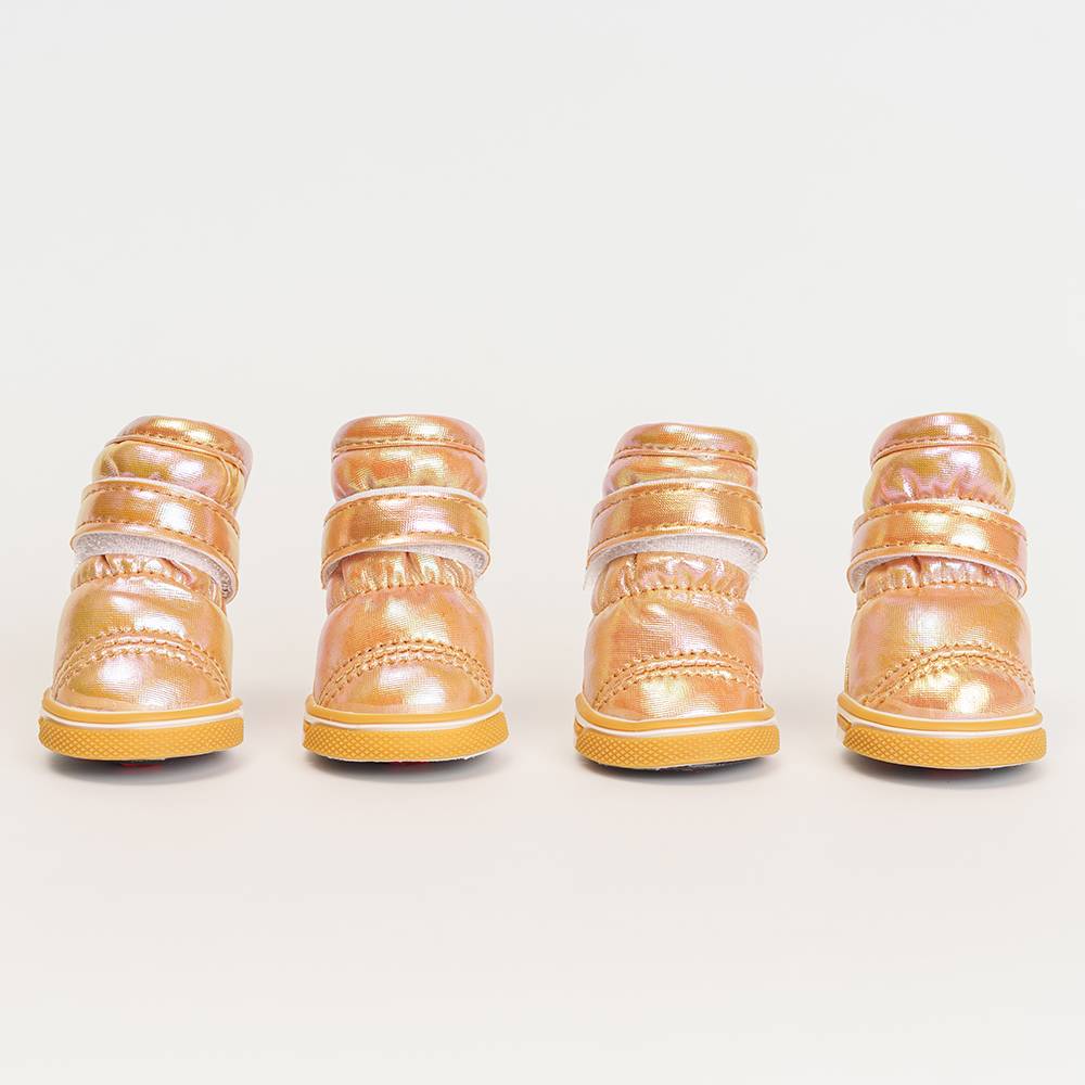 - Удобная застежка-липучка надежно фиксирует обувь на питомце.