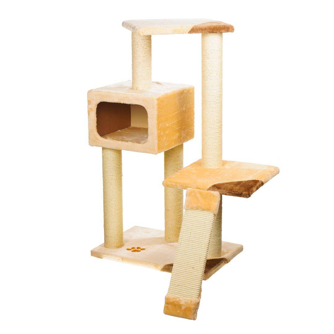 PETMAX Дом-когтеточка CALCUTTA 59х39х106 см в бежевом цвете – это игровой комплекс для кошек и котов, который предназначен для затачивания когтей, а также для игр и более спокойного времяпровождения. Комплекс оснащен столбиками из волокна сизаль, которое способствует комфортному и эффективному стачиванию когтей. Мягкое плюшевое покрытие удобно для использования кошкой и отлично выписывается в интерьер комнаты.