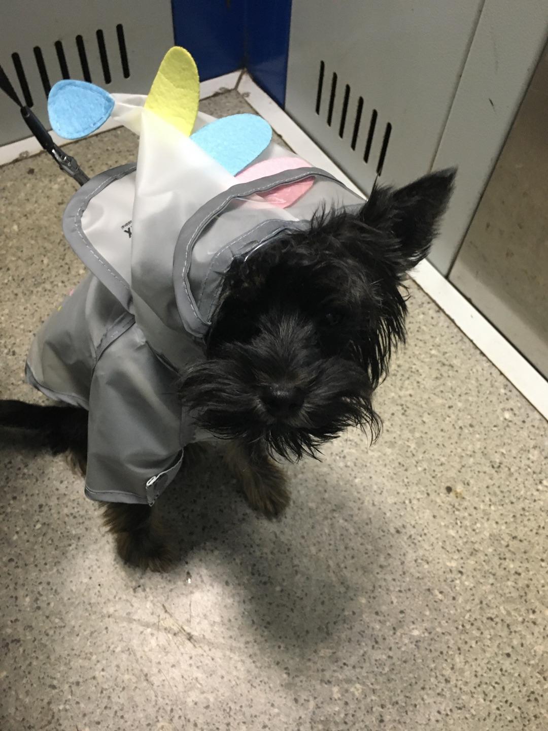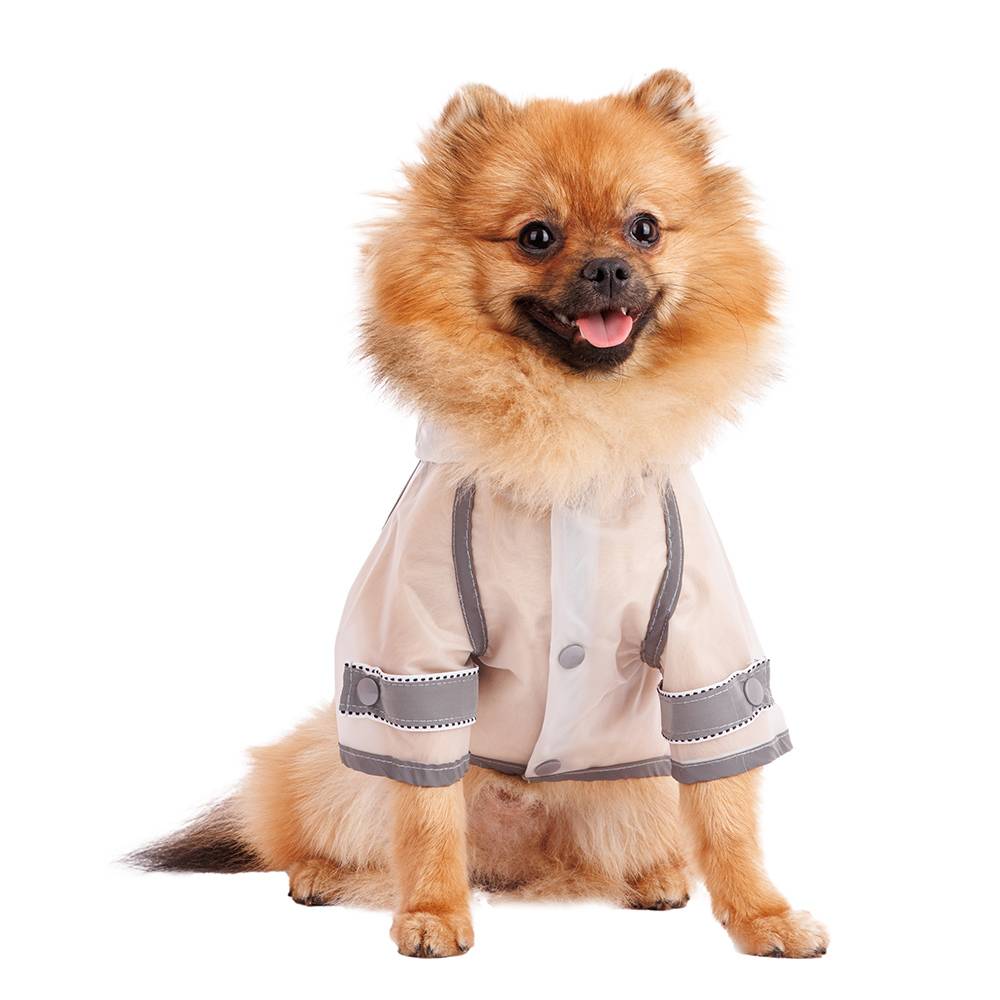 Хороший дождевик, плотный, хорошие кнопки, капюшон, через который видно собачке))) . В меру плотный, собачка комфортно в нем двигается.Комментарий