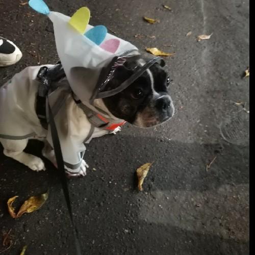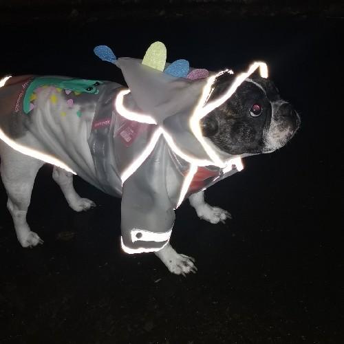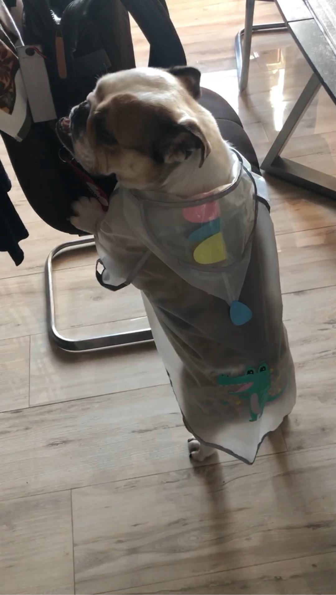 Очень хороший дождевик, нравится, что есть капюшон и он защищает мордочку и голову от сильного дождя. Также он яркий и оригинальный, мопс постоянно привлекает внимание окружающих к себе во время прог...Комментарий