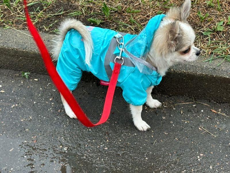 Дождевик с капюшоном от бренда Petmax защитит собаку от непогоды.