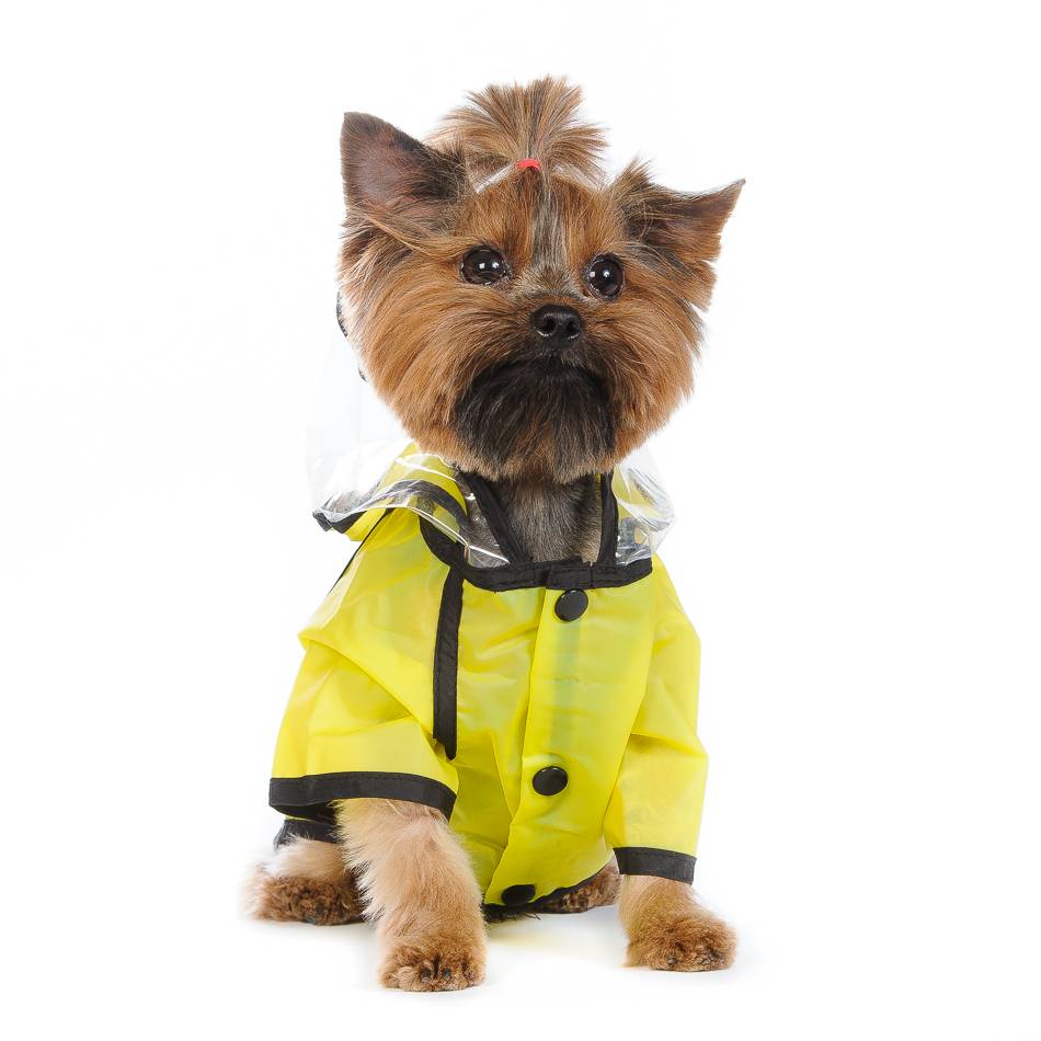 Petmax представляет новую весенне-летнюю коллекцию одежды для собак. Дождевик с капюшоном желтый изготовлен из водонепроницаемой ткани.