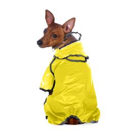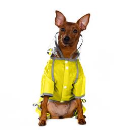 Petmax представляет новую летнюю коллекцию одежды для собак. Дождевик с капюшоном желтый изготовлен из водонепроницаемой ткани.