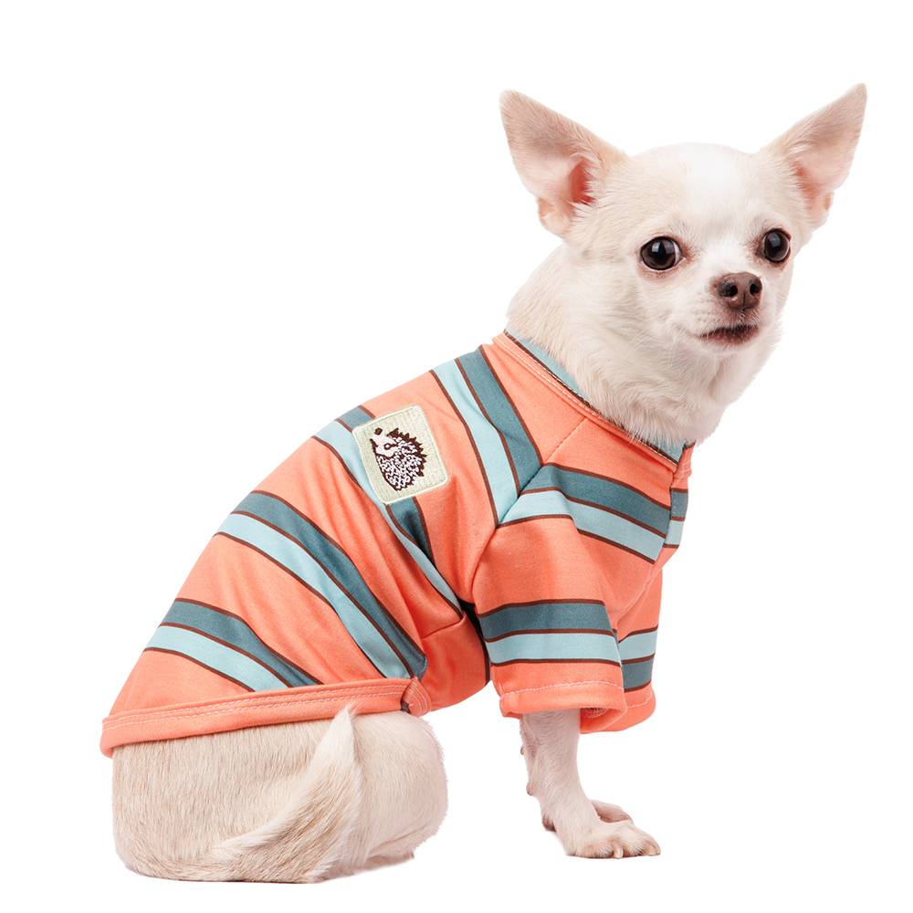 Оранжевая футболка с полосками подходит для повседневного ношения, праздничных мероприятий и для проведения фотосессий. Футболка защитит питомца от палящего солнца в яркий солнечный день, поможет комфортно себя чувствовать в прохладные дни.