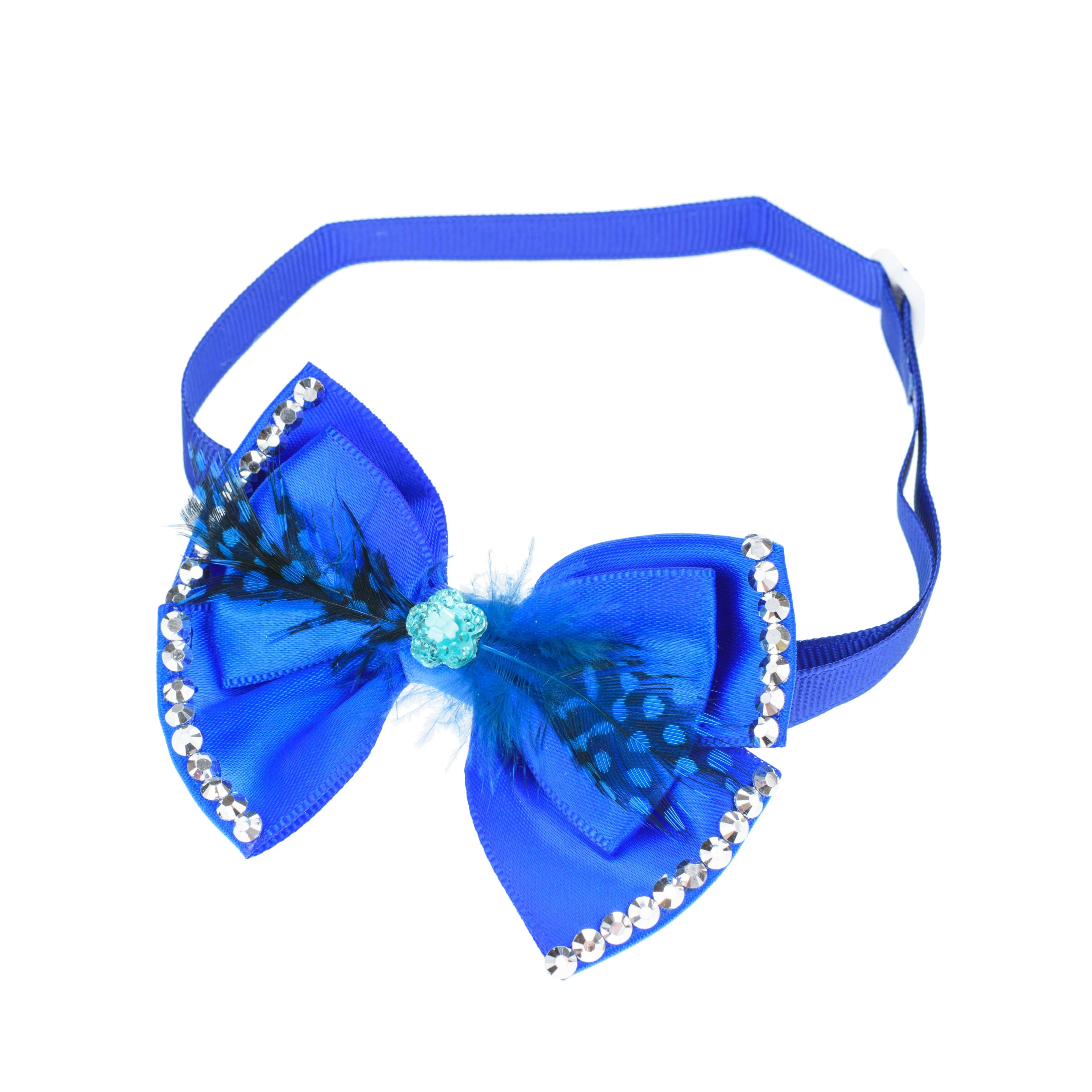 Галстук-бант для животных синий с перьями и стразами, оригинальный и яркий подойдет как кошкам, так и собакам.