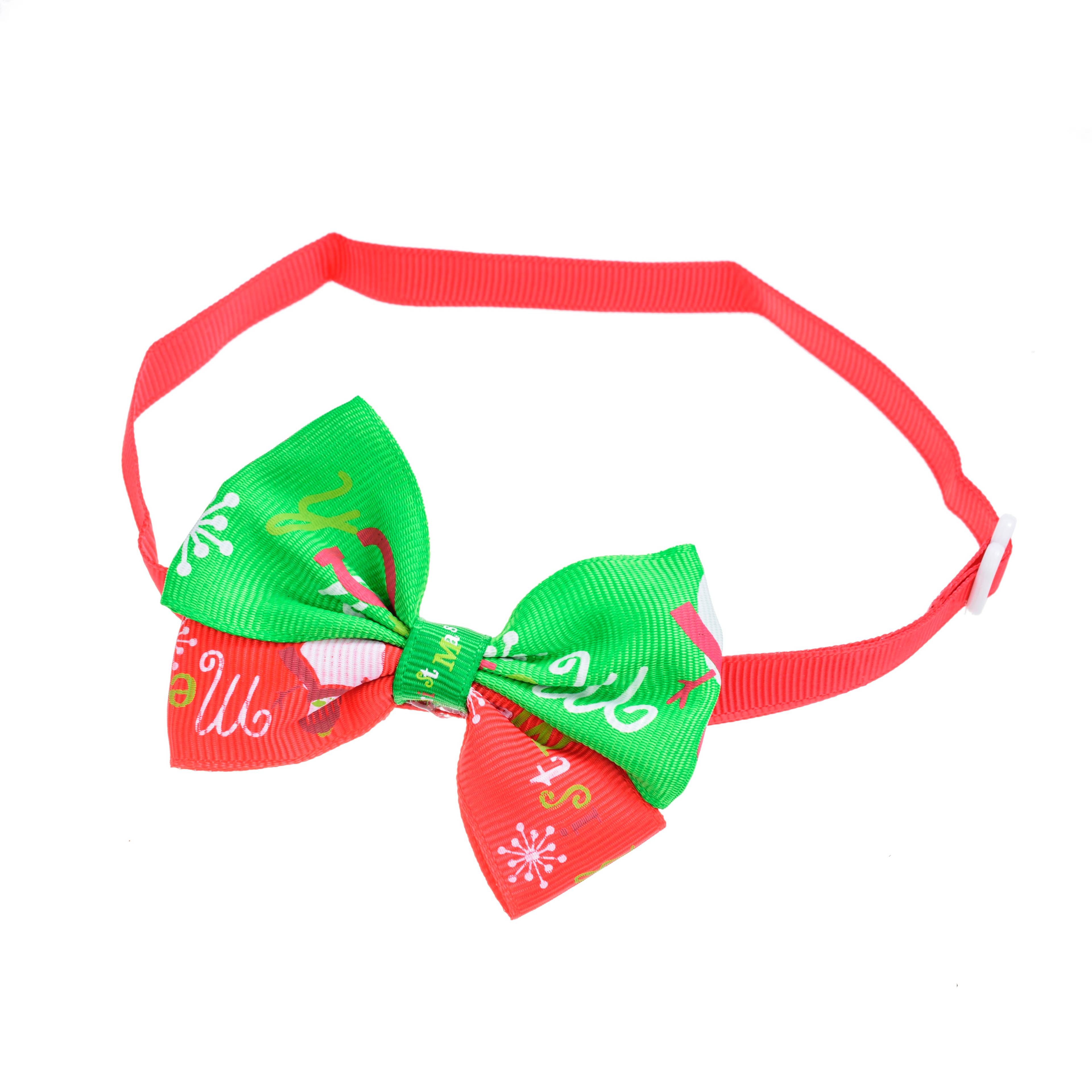 Галстук-бант красно-зеленый Merry Christmas для собак подойдет в качестве декоративного украшения на праздник, выставку, фотосессию, а также Новый год! Не может служить в качестве ошейника. Благодаря удобной регулировке подойдет для собак различных размеров.