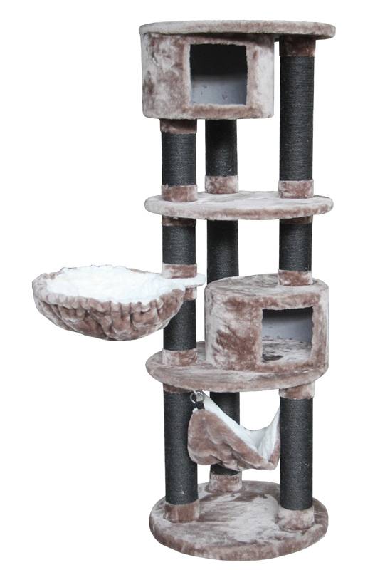 - Столбики служат когтеточкой, они обмотаны верёвкой из сизалевого волокна - прочным материалом, который идеально подходит для стачивания когтей.