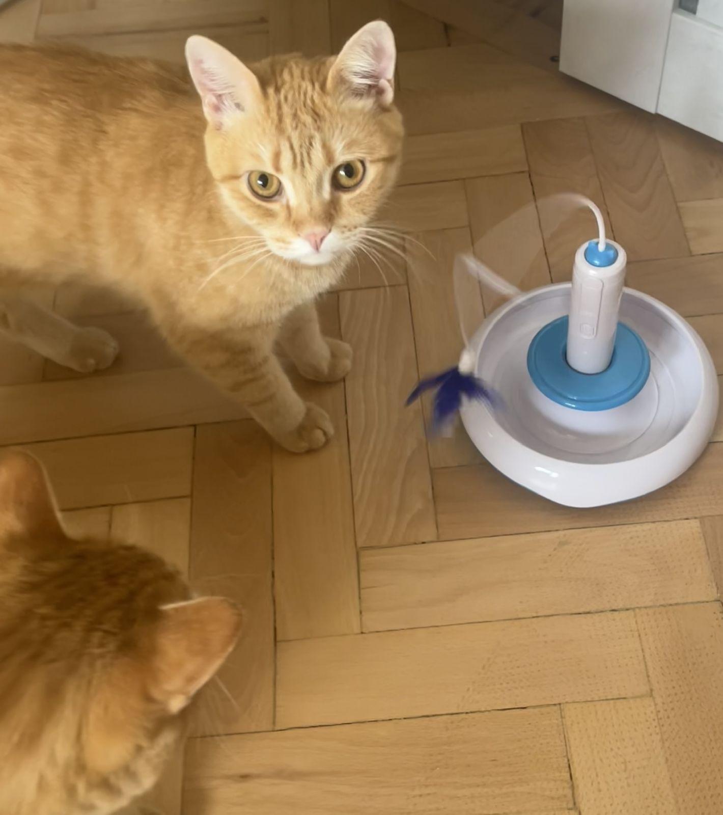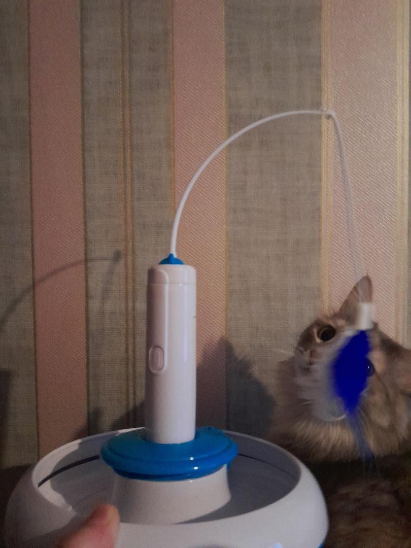 - Несколько вариантов использования игрушки: трек с мячиком, дразнилка или все вместе (держатель ставится по центру с дразнилкой).
