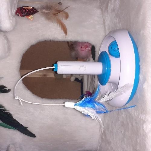 - Если у кошки есть склонность к поеданию несъедобных материалов, не оставляйте ее с игрушкой без присмотра, чтобы она не проглотила какую-либо деталь.