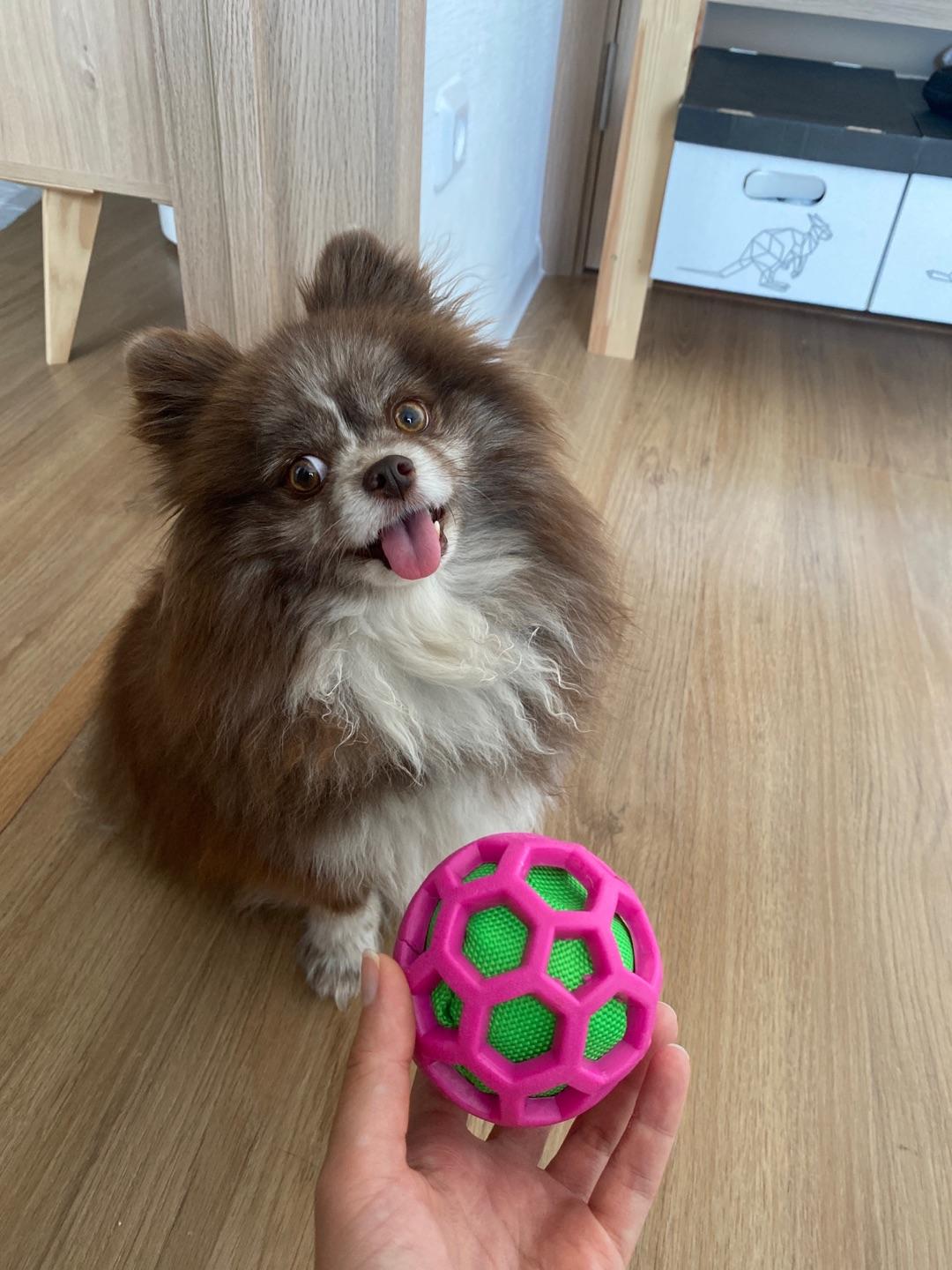 Переживала, что окажется большой для шпица, но моей собаке очень нравится игрушка.