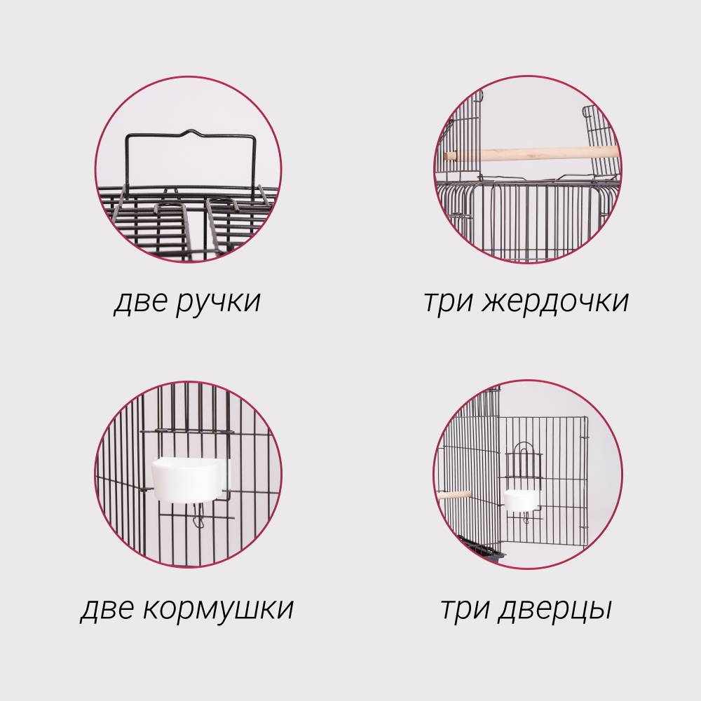 - Одна дверца с передней стороны клетки, есть дверцы сверху клетки.