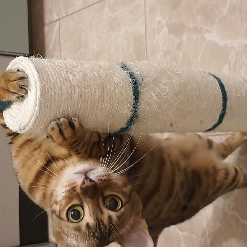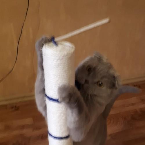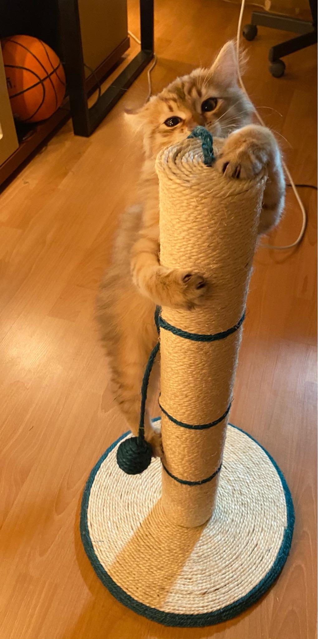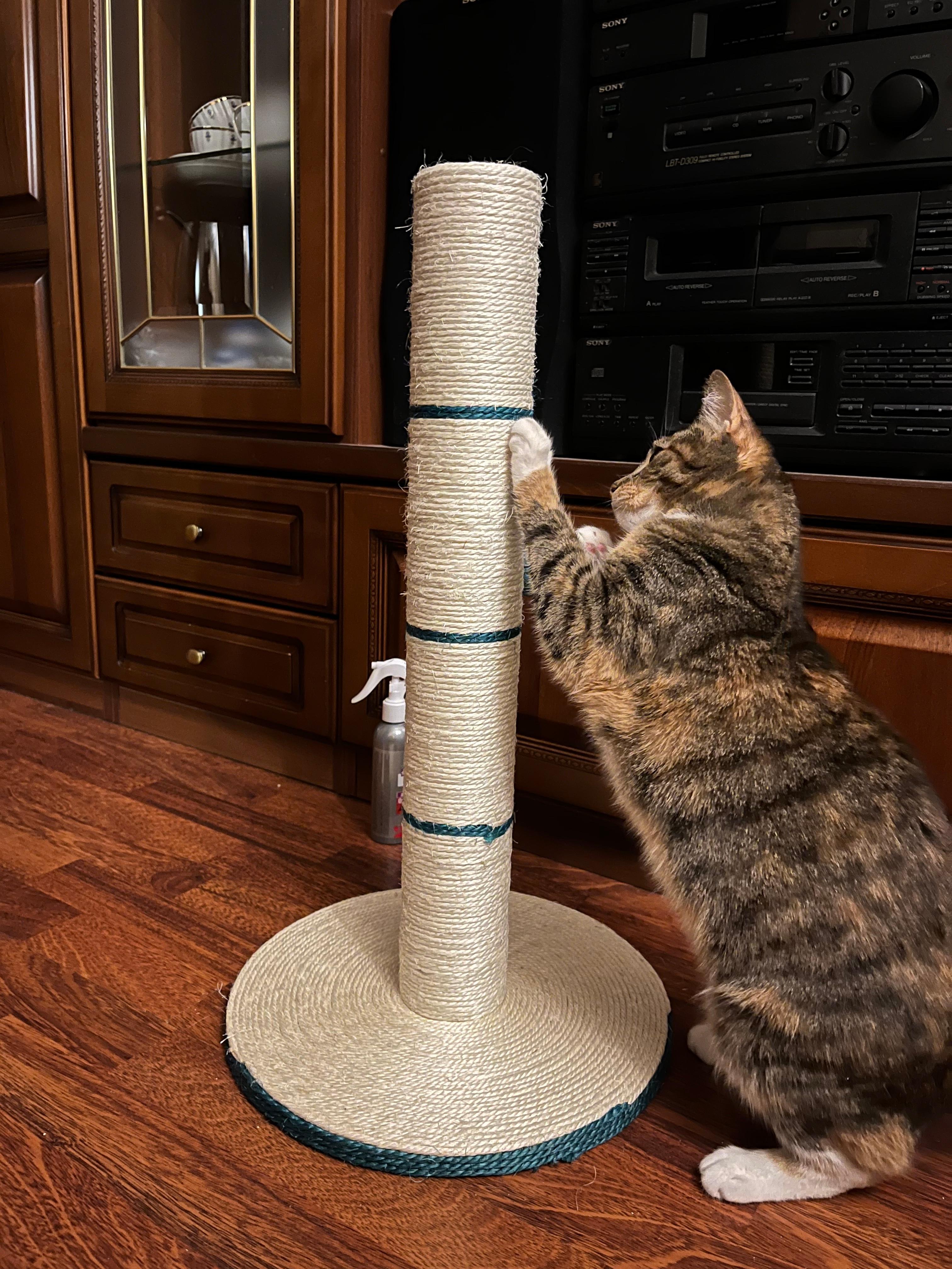 - Надежное покрытие столбика когтеточки из сизаля - прочного материала, который идеально подходит для стачивания когтей.