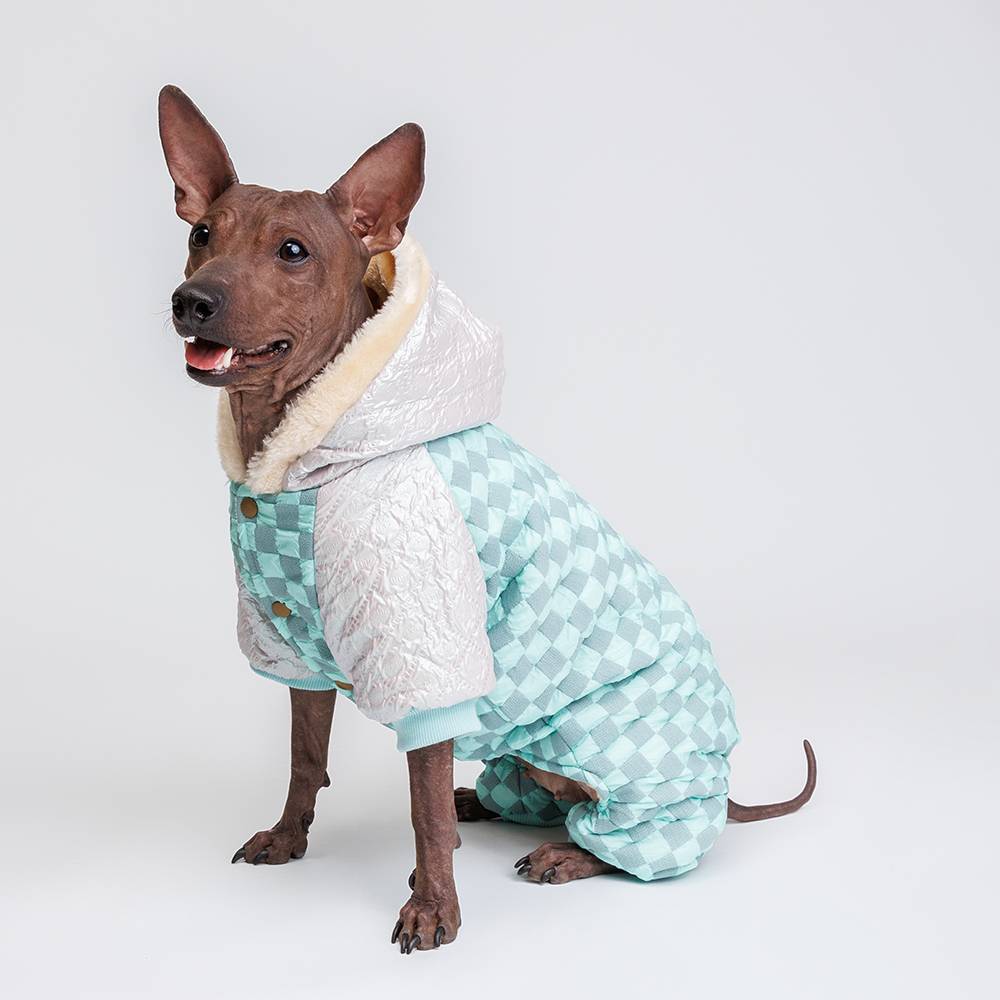 Комбинезон с капюшоном защитит питомца от холода, ветра, дождя и снега.