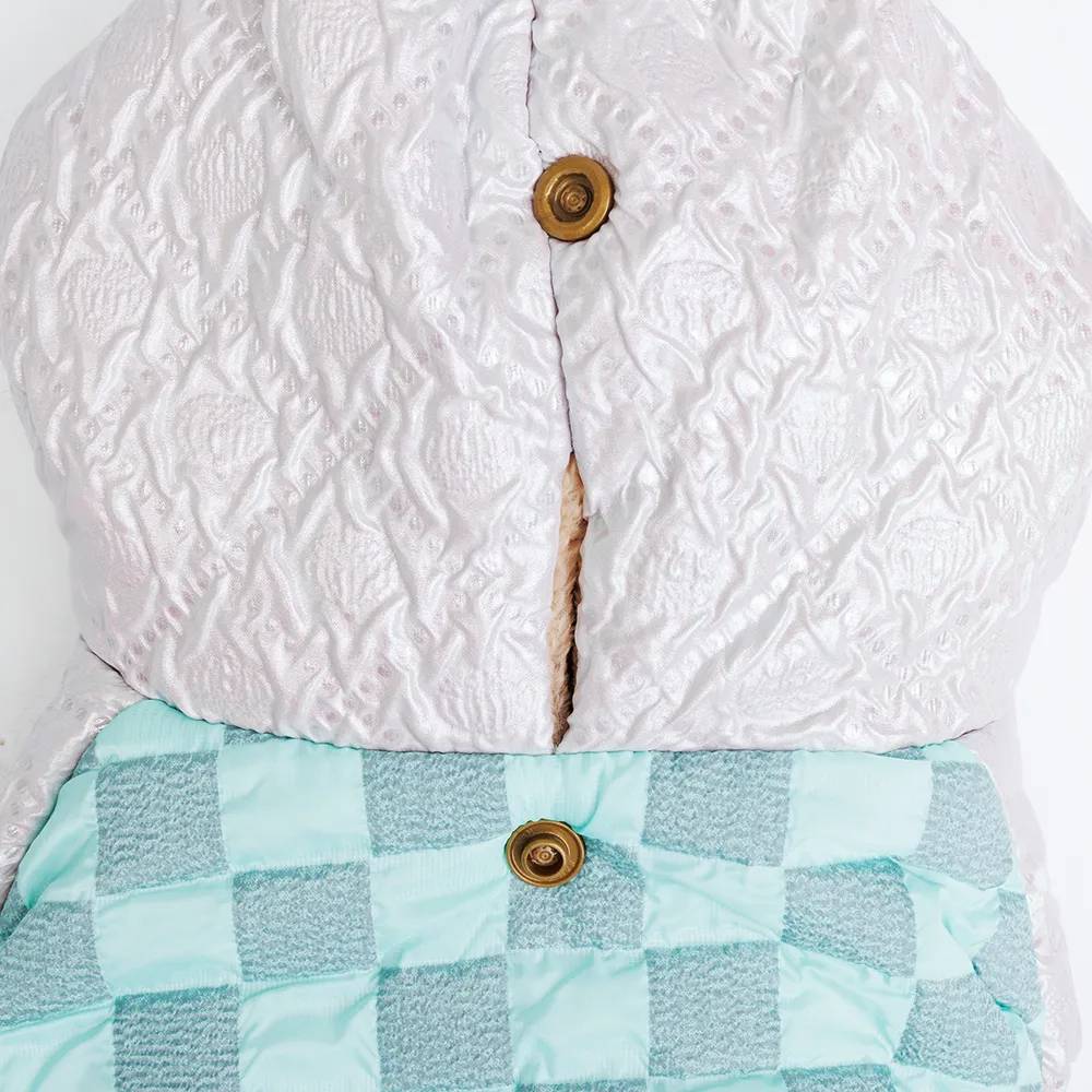 - Дополнительная кнопка на животе регулирует объем комбинезона.
