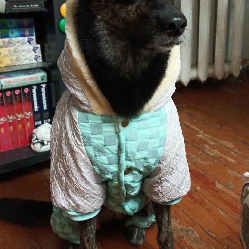 Комбинезон с капюшоном защитит питомца от холода, ветра, дождя и снега.