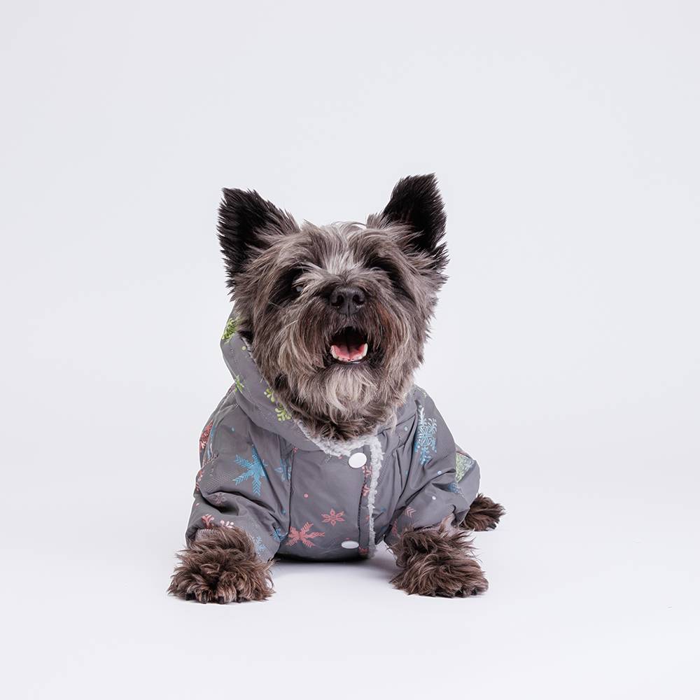 Комбинезон со снежинками для собаки-девочки защитит любимицу от холода, ветра, дождя и снега.