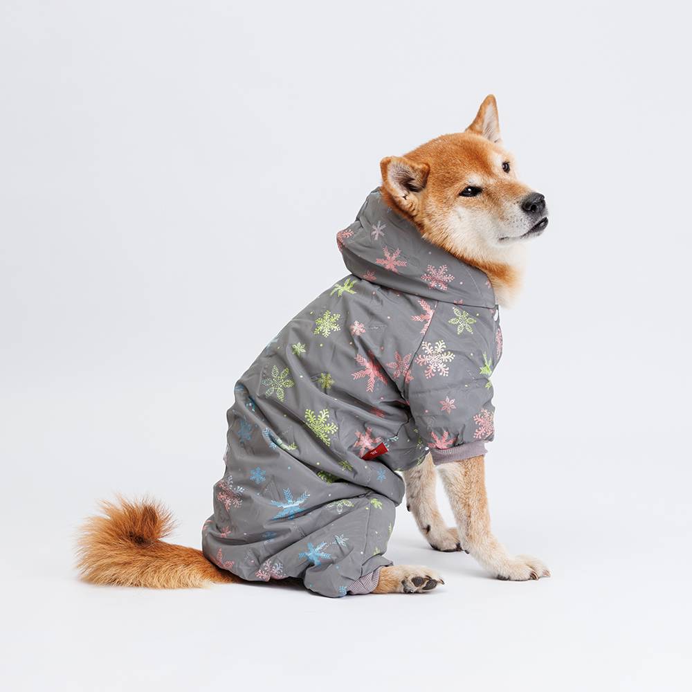 Комбинезон со снежинками для собаки-девочки защитит любимицу от холода, ветра, дождя и снега.
