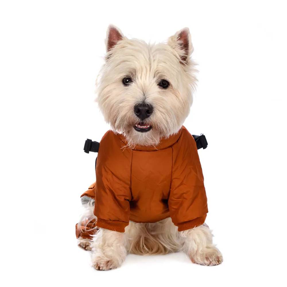 Одежда для собак от Petmax - это качественные, модные изделия, которые подойдут любой собаке. Комбинезон оранжевого цвета на молнии со шлейкой из новой коллекции Petmax - практичный повседневный костюм для прогулок холодными зимними днями.