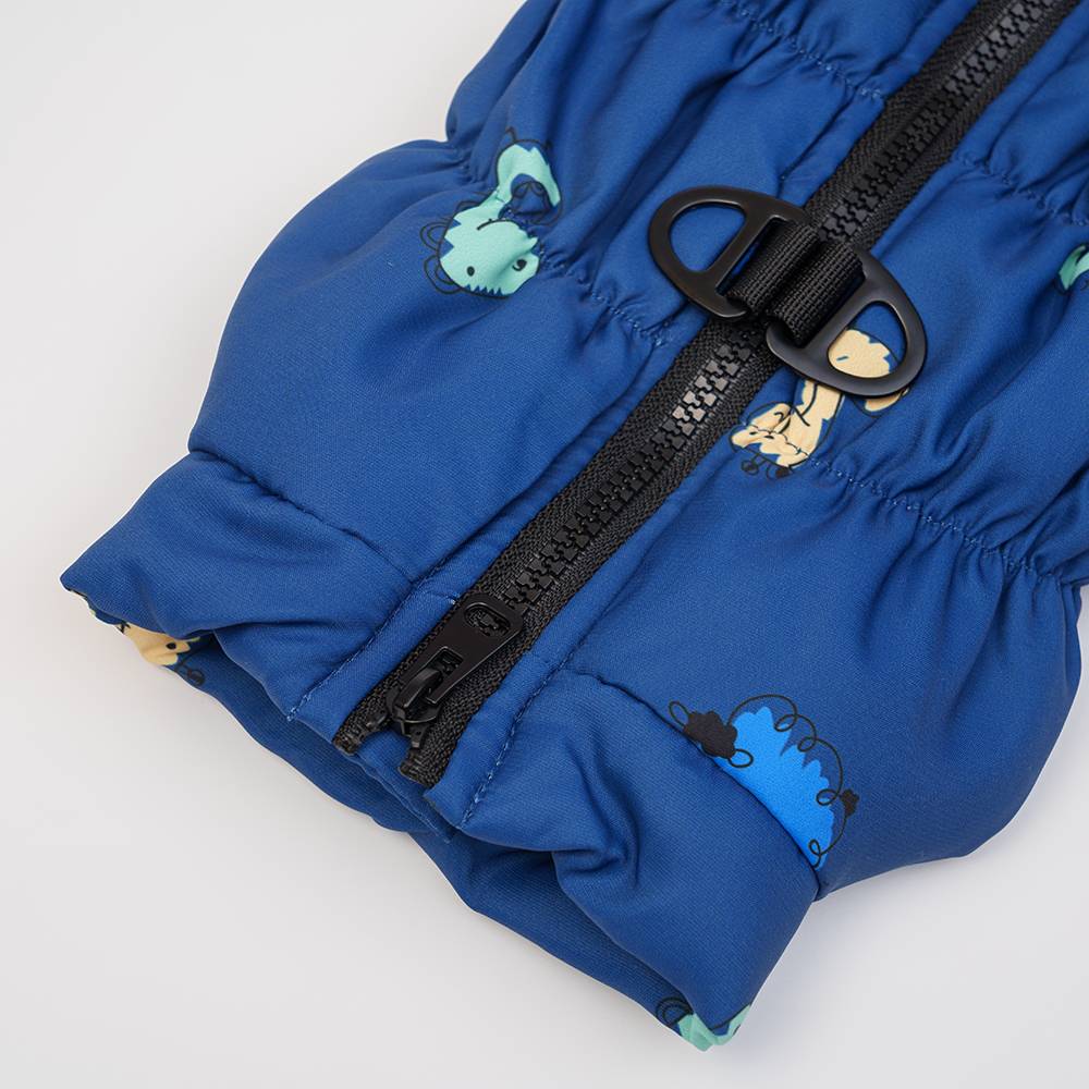 - Резинка на животе для удобной посадки комбинезона на теле собаки.