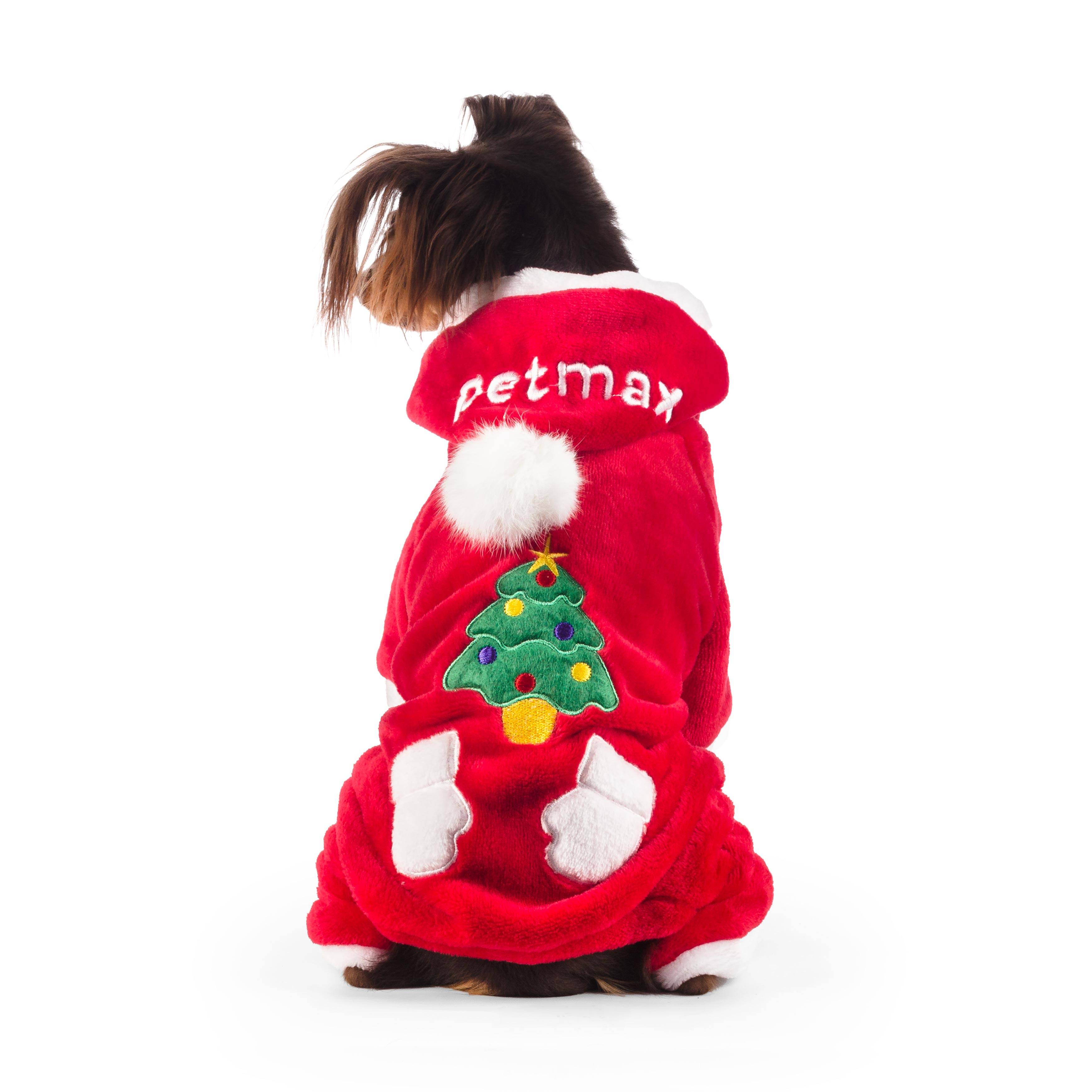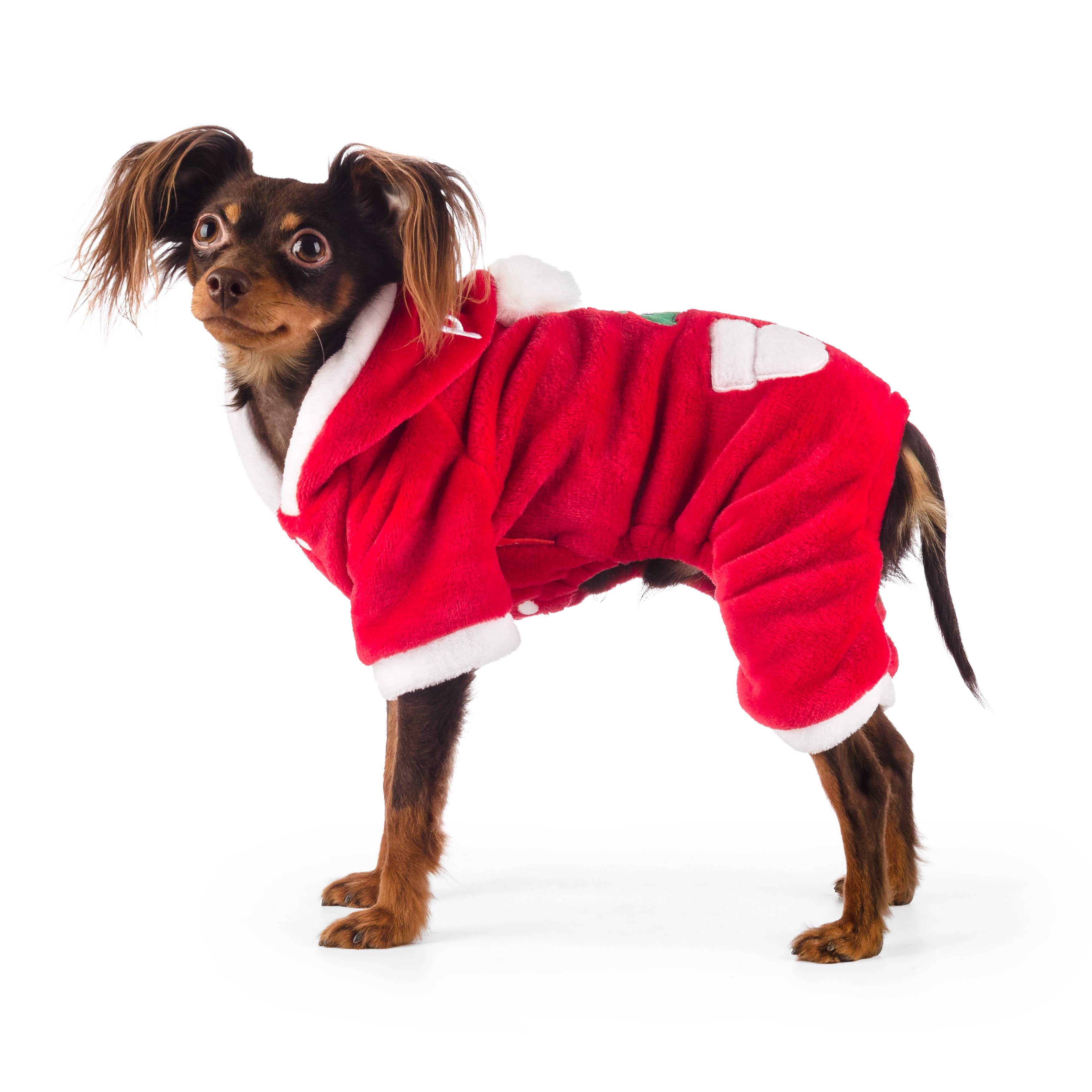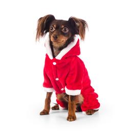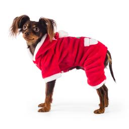 Комбинезон велюровый бордовый Дед Мороз декоративный праздничный костюм для вашего питомца, изготовленный из уютной теплой ткани.