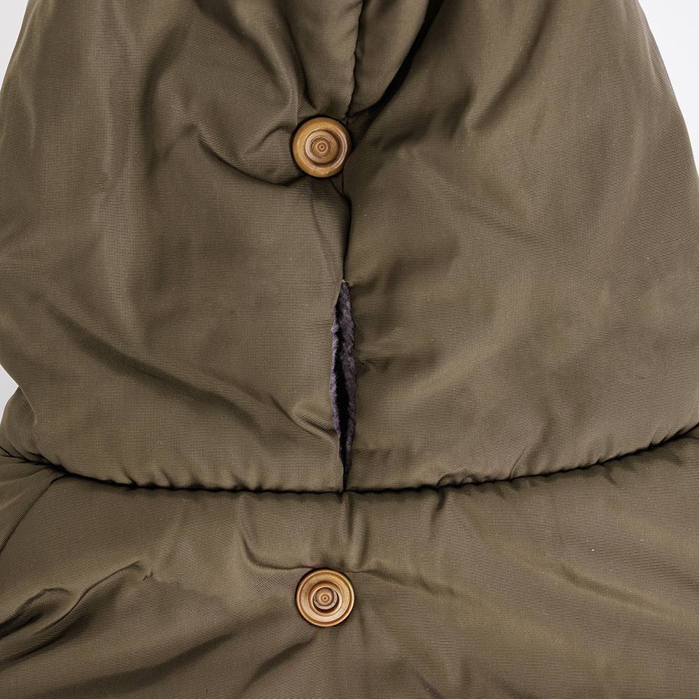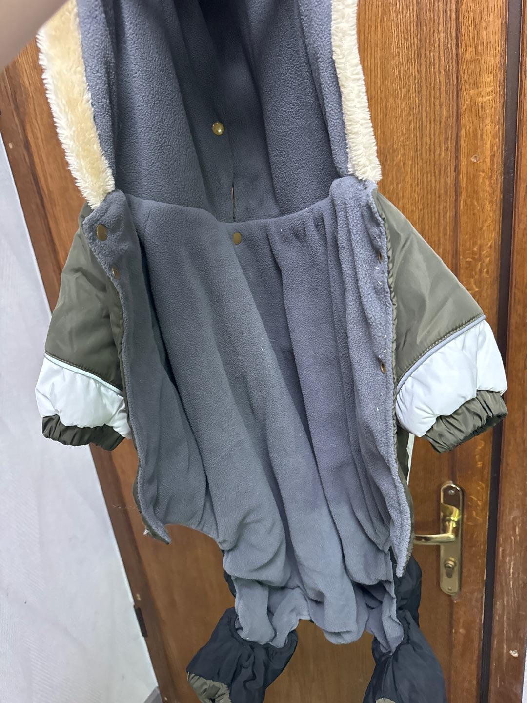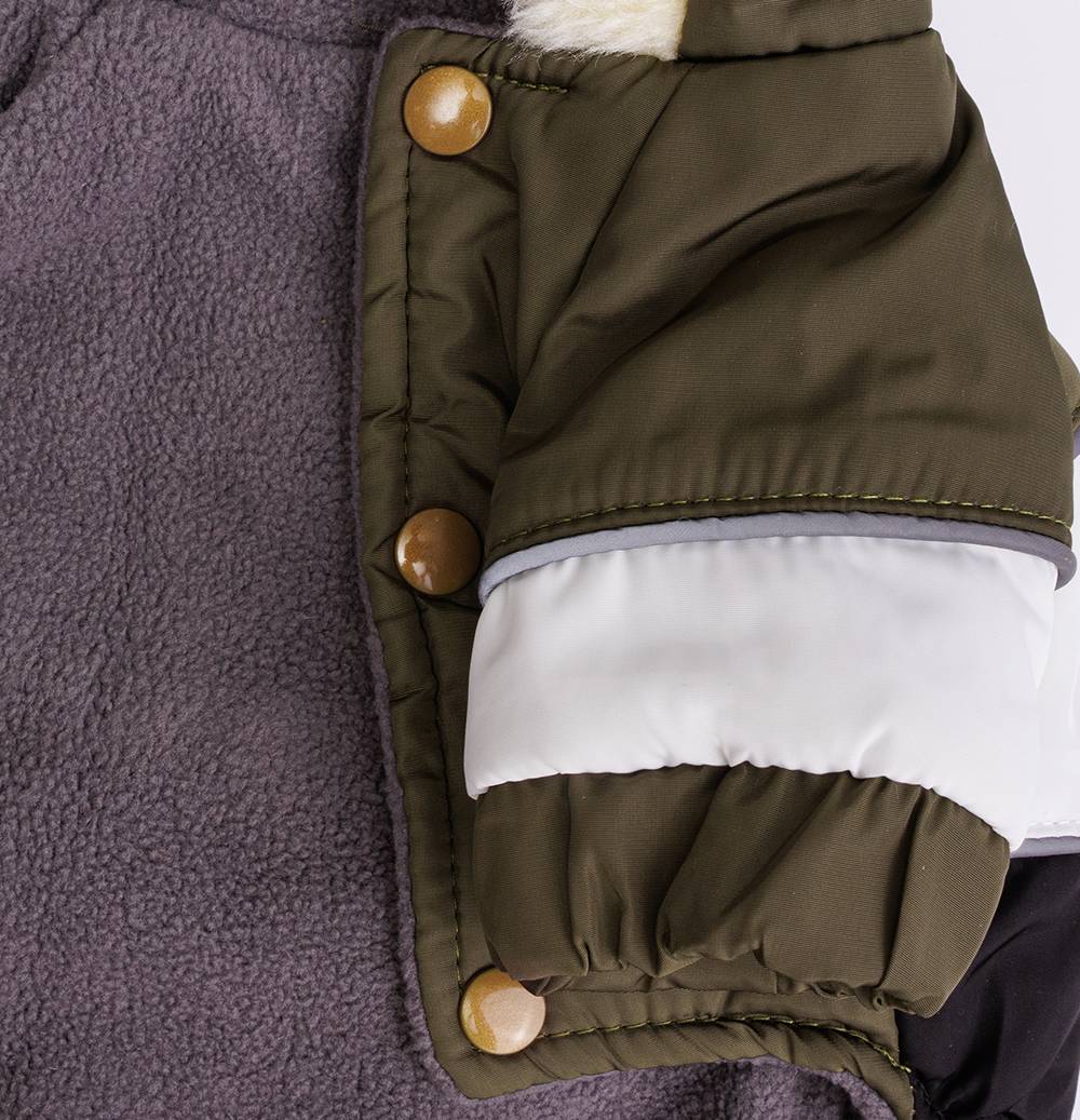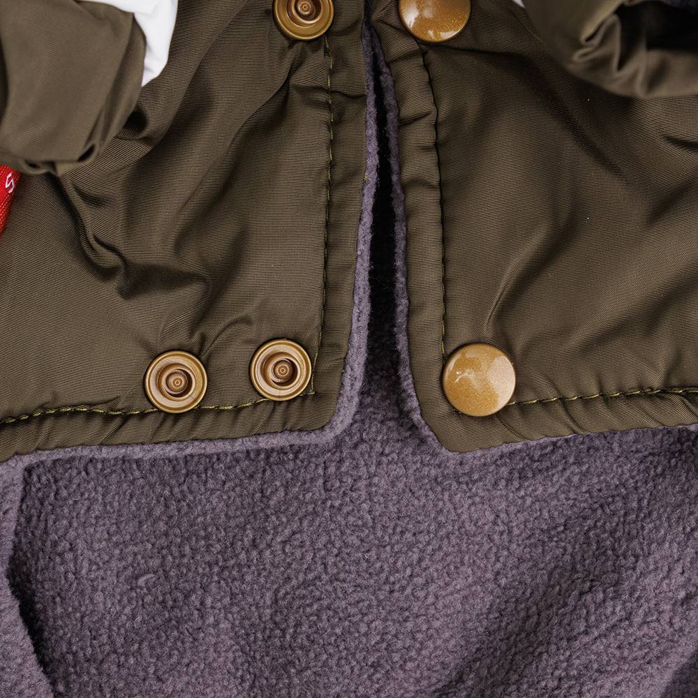 - Дополнительная кнопка на животе регулирует объем комбинезона.