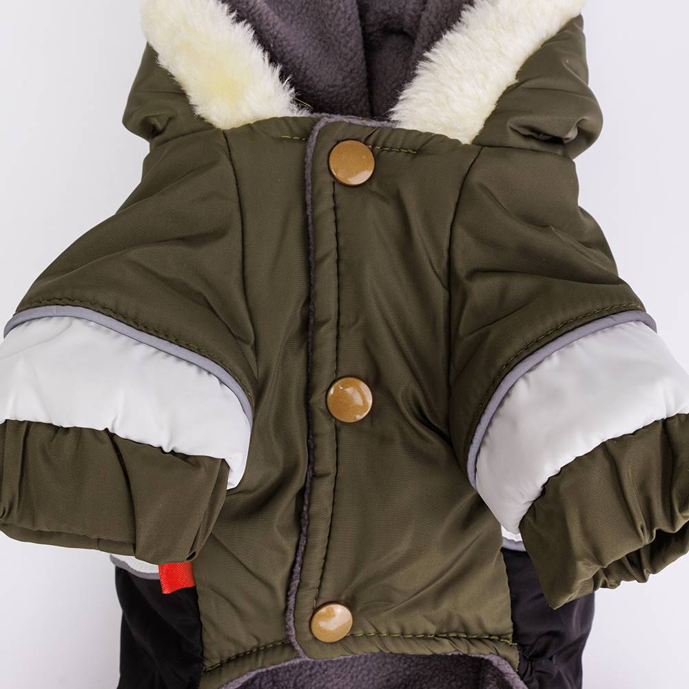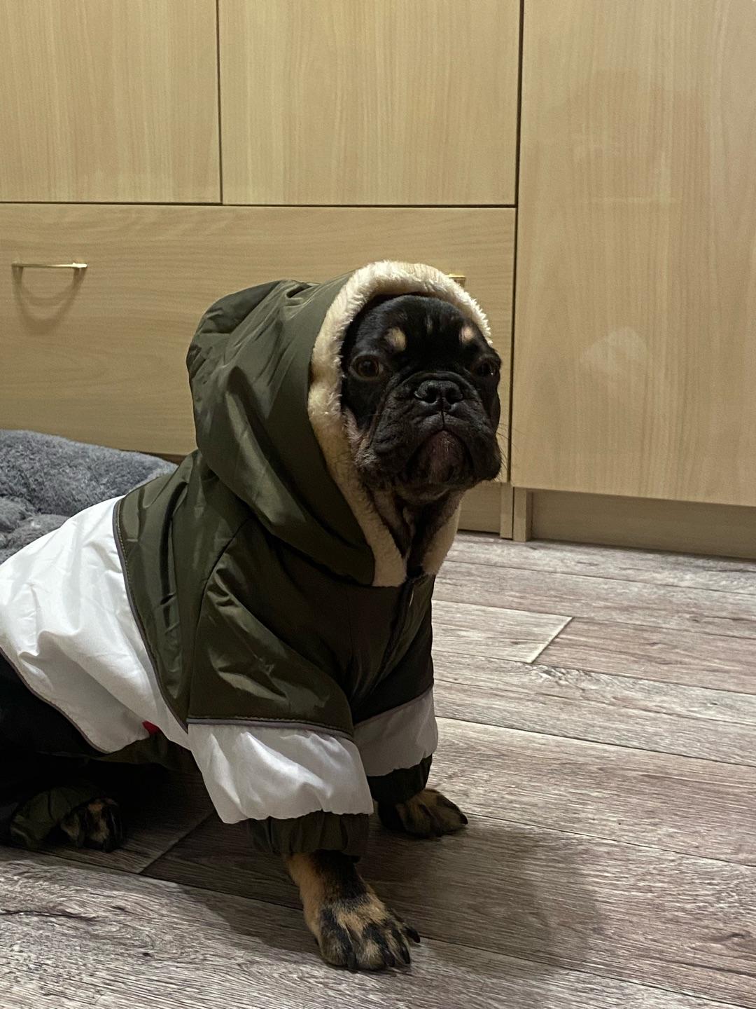 Комбинезон с капюшоном защитит питомца от холода, ветра, дождя и снега.