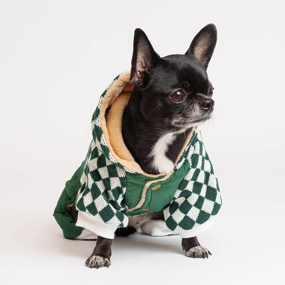 Комбинезон с капюшоном защитит питомца от непогоды и сделает прогулки более комфортными.