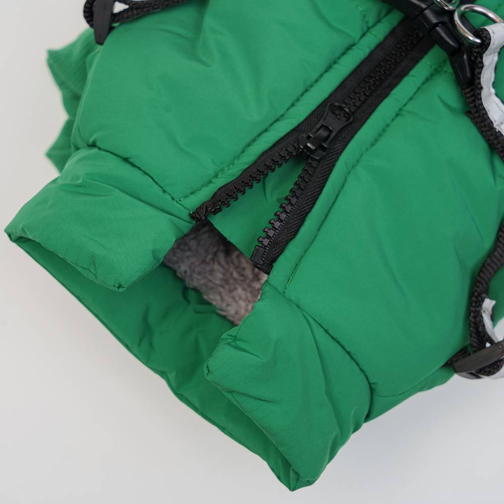 - В комбинезон вшита регулируемая шлейка со светоотражающими элементами, застежка-фастекс.