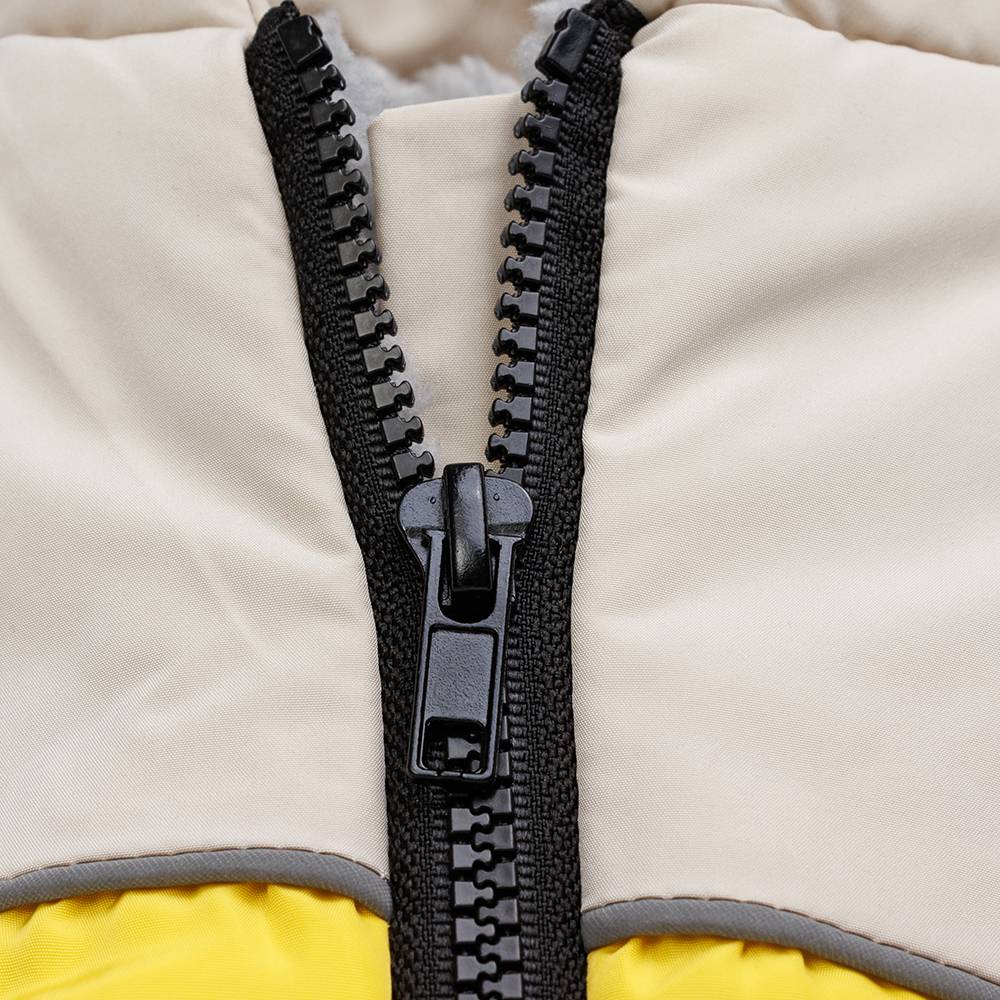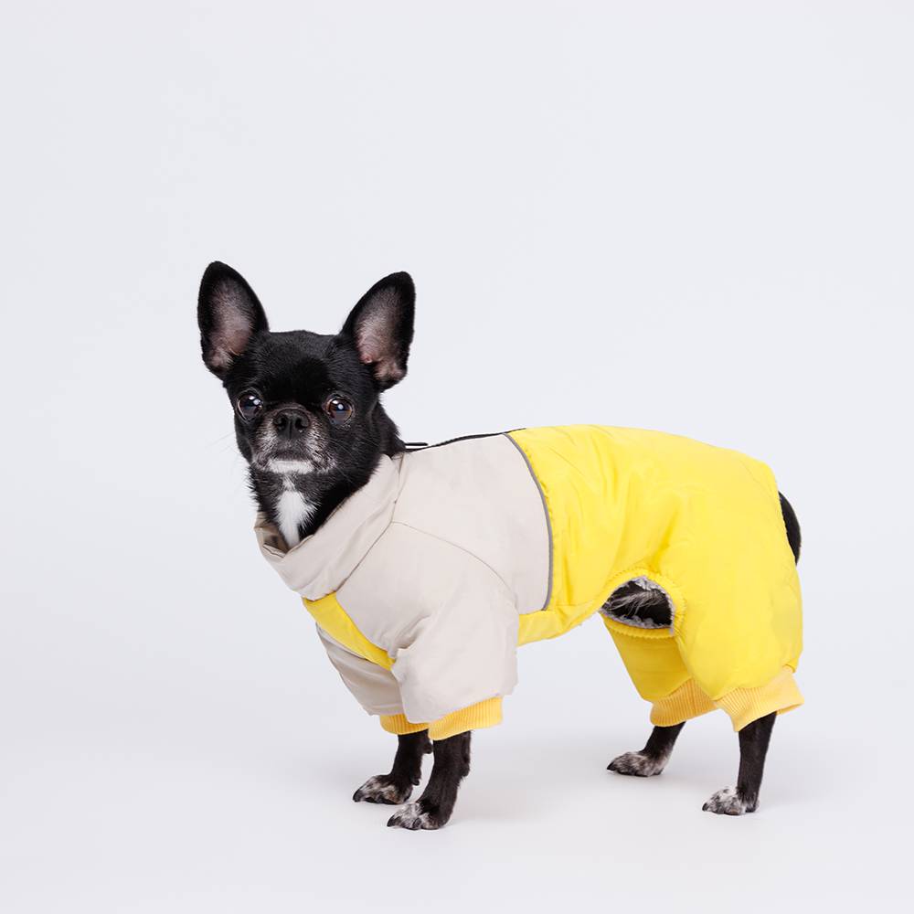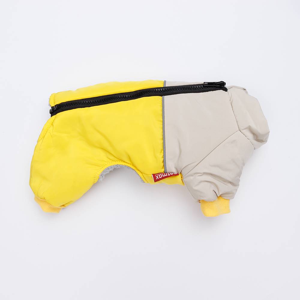 Комбинезон с диагональным замком защитит питомца от холода, ветра, дождя и снега.