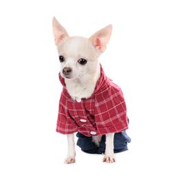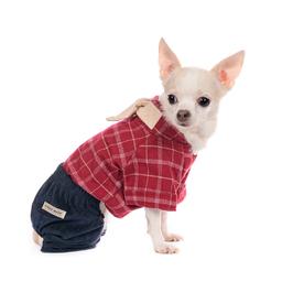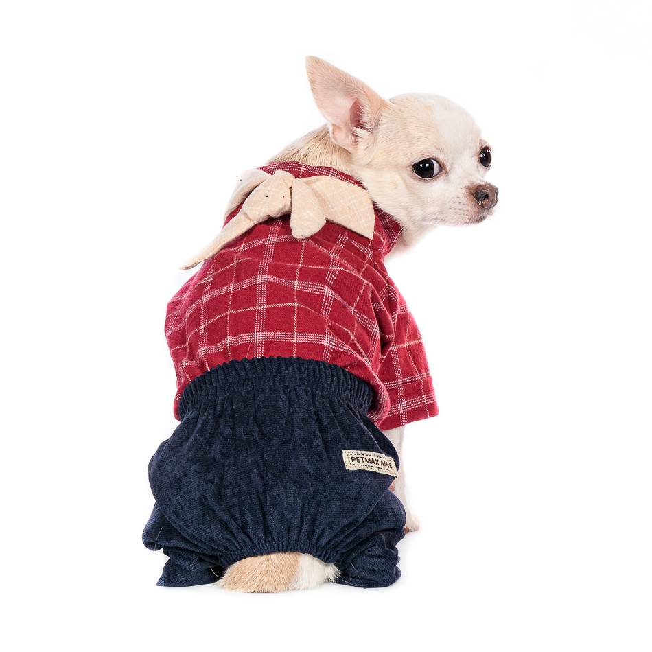 Костюм из цельной ткани с красной рубашкой в клетку и тёмно-серыми брючками украсит вашего маленького модника. Ваш питомец будет комфортно чувствовать себя на прогулках по весенней погоде и не останется незамеченным. Галстук и пуговки завершают образ хорошего мальчика. Аксессуар подходит для повседневного ношения, праздничных мероприятий и для проведения фотосессий.
