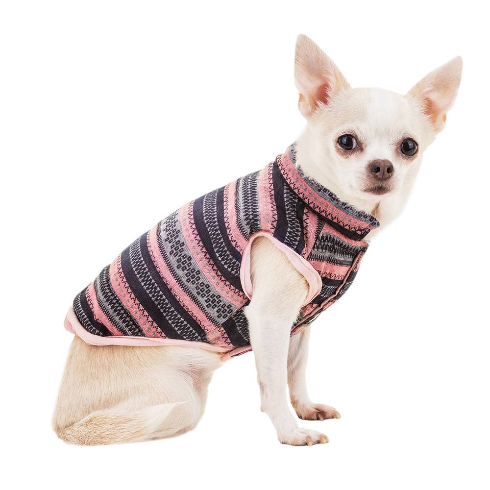 Удобная, теплая жилетка, собачке комфортно в ней, жилетка двухсторонняя.