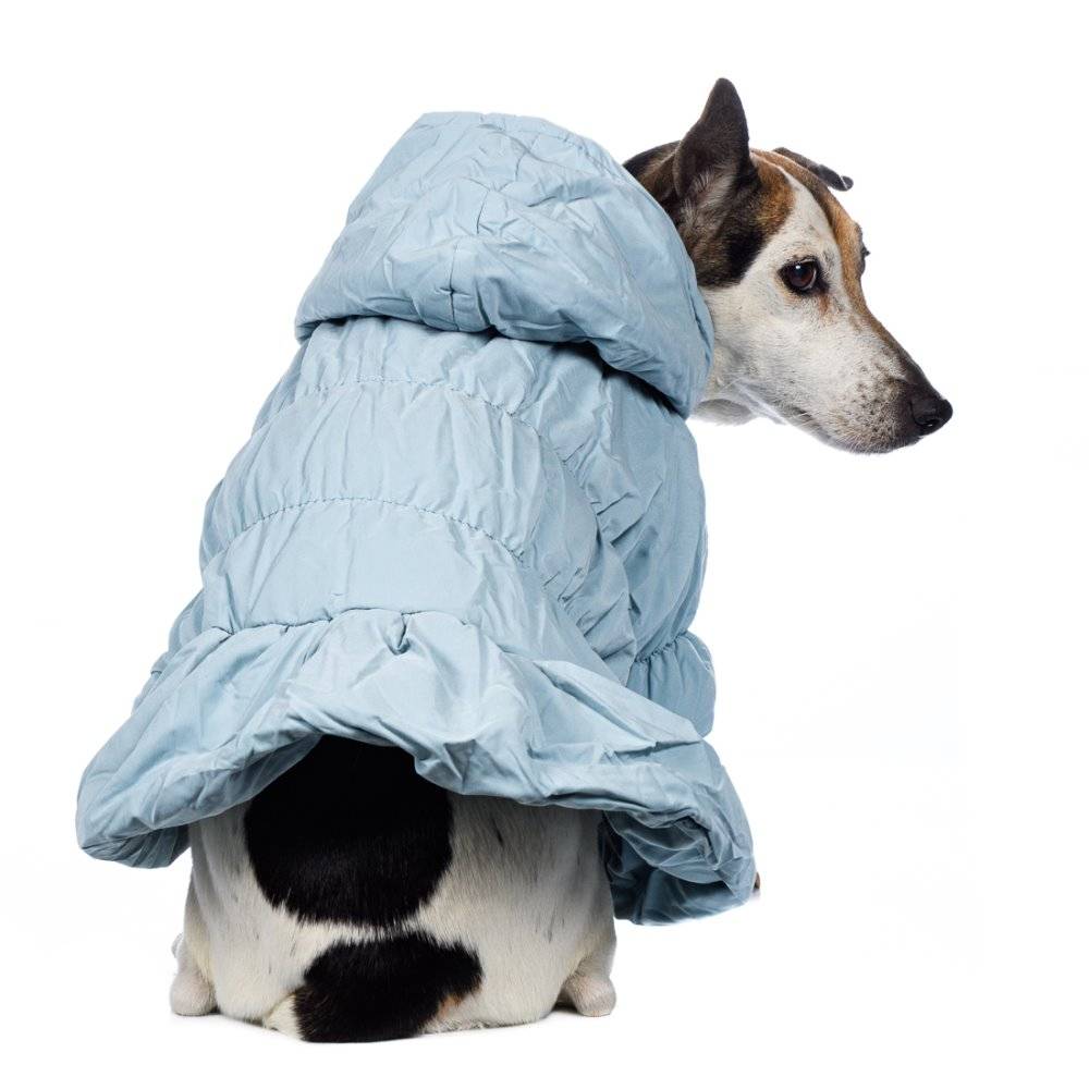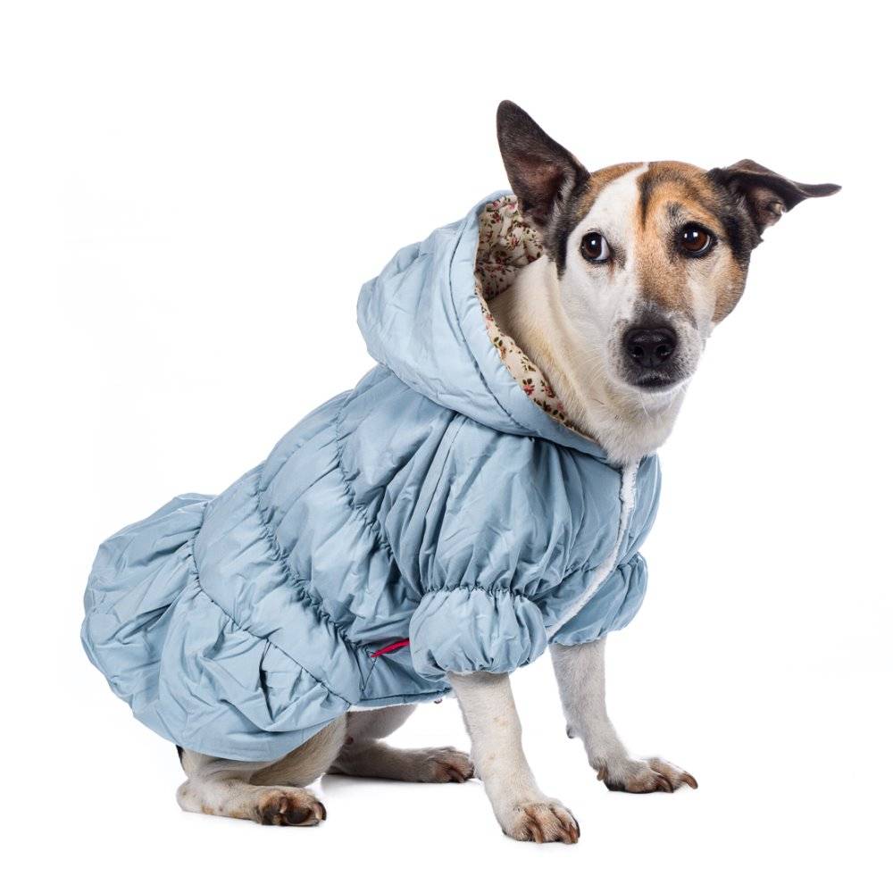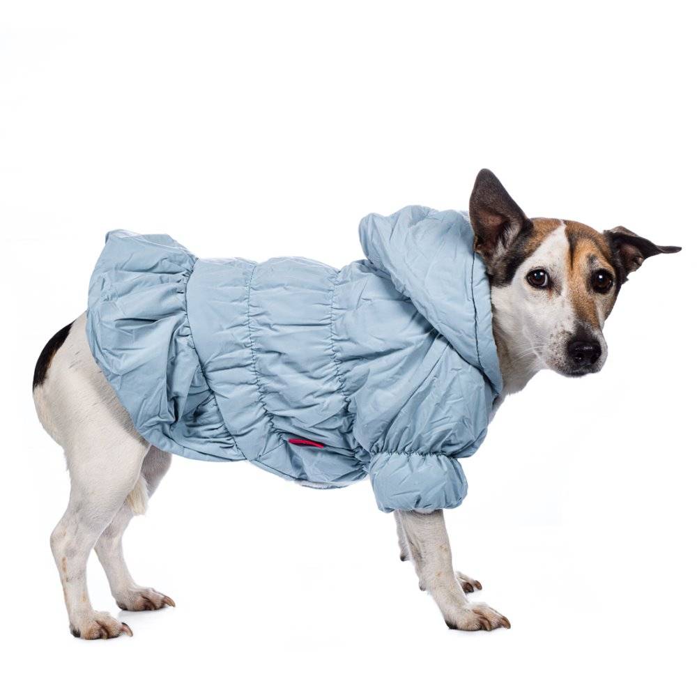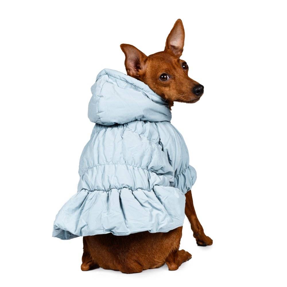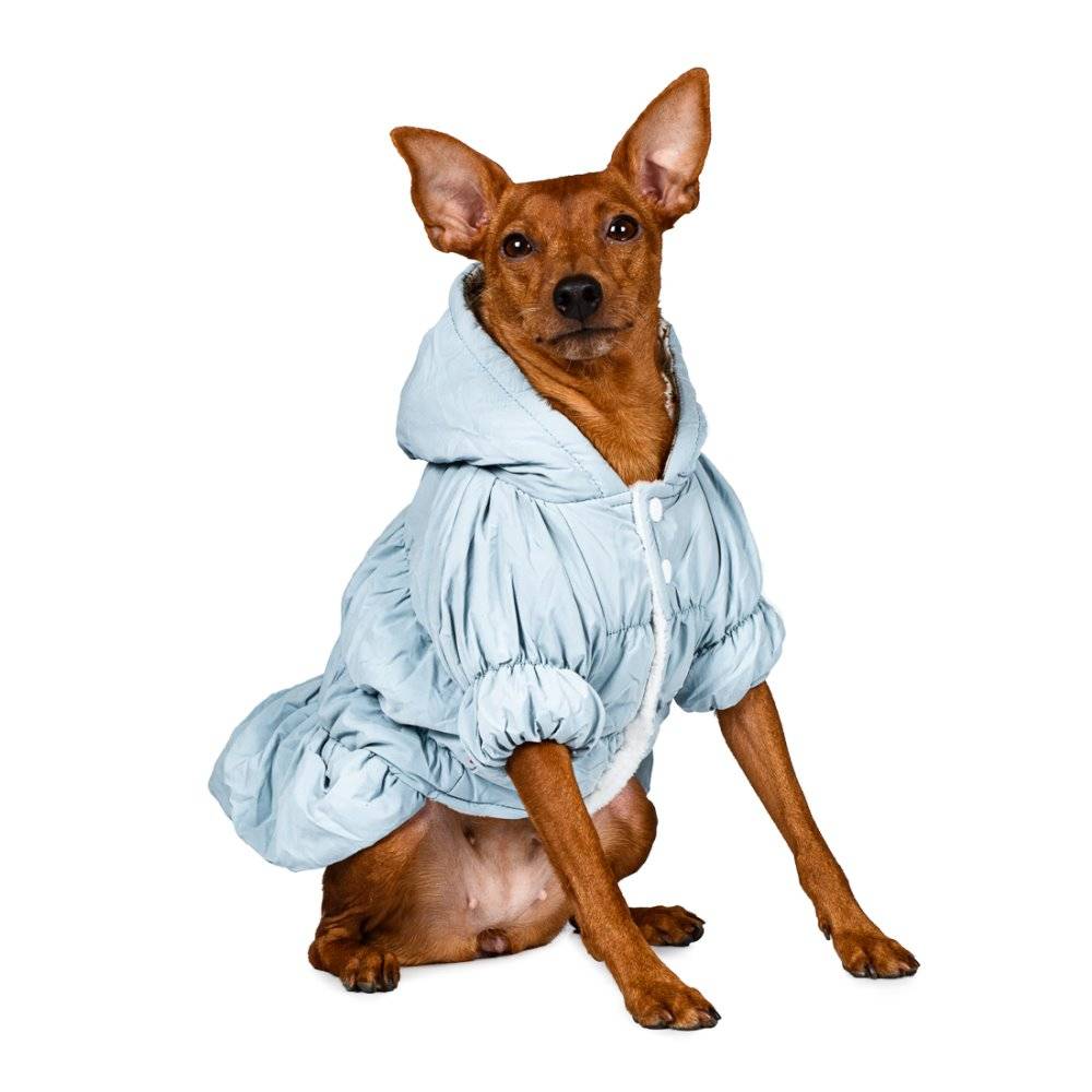 Куртка платье голубое из новой коллекции Petmax – практичный повседневный костюм для прогулок холодными зимними днями.