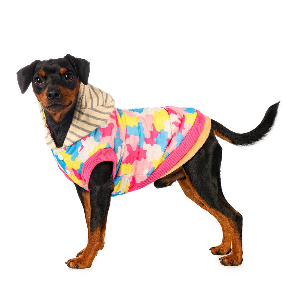 Куртка с капюшоном для собак с камуфляжным рисунком розового цвета из новой коллекции от бренда Petmax. Одежда для собак от Petmax - это качественные, модные изделия, которые подойдут любой собаке.