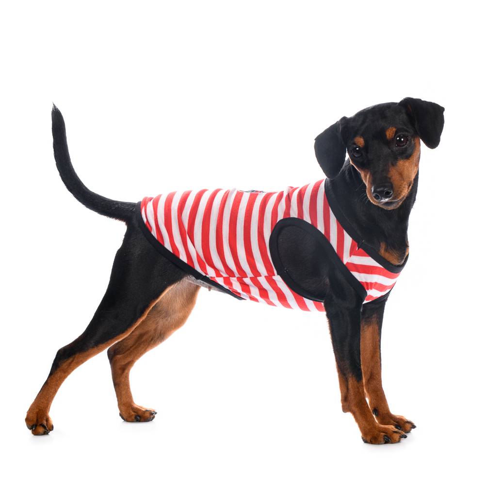 Майка в полоску красная подходит для повседневного ношения, праздничных мероприятий и для проведения фотосессий. Майка защитит питомца от палящего солнца в яркий солнечный день, поможет комфортно себя чувствовать в прохладные дни.