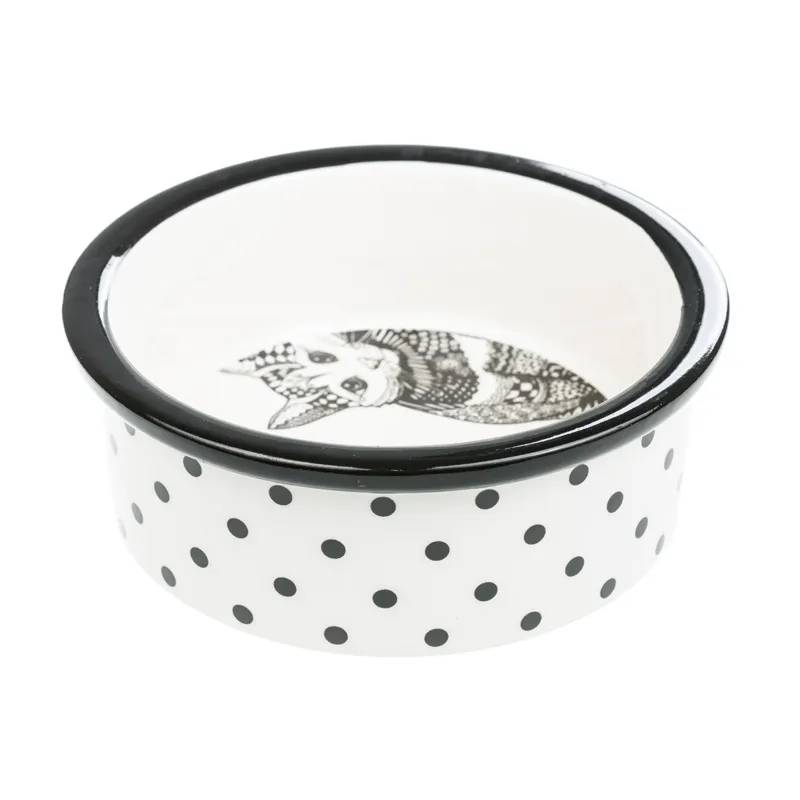 Petmax Миска керамическая для кошек, 300 мл, диаметр 12 см, бело-черный