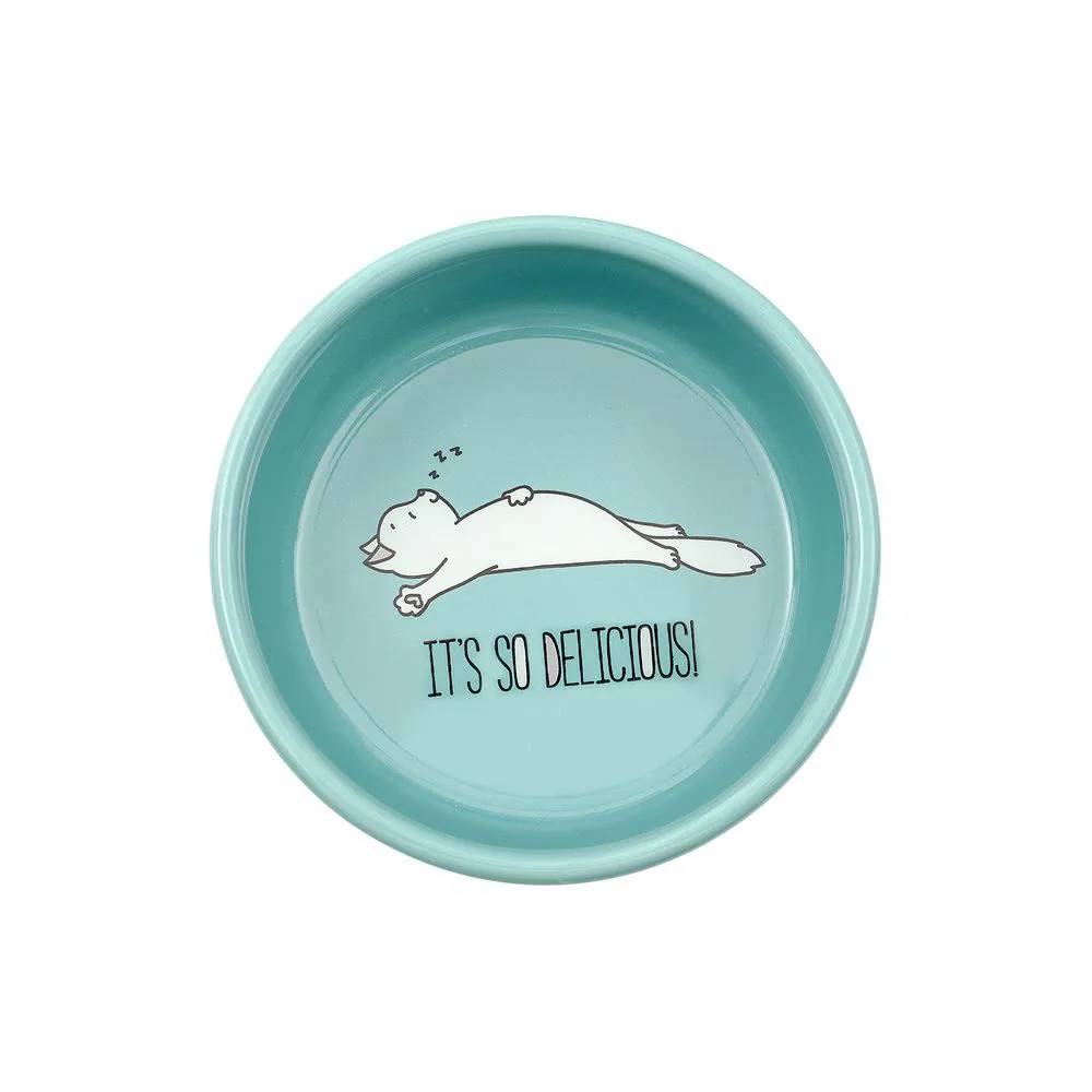 Миска для кошек голубая керамика с рисунком объемом 200 мл, диаметром 11 см.