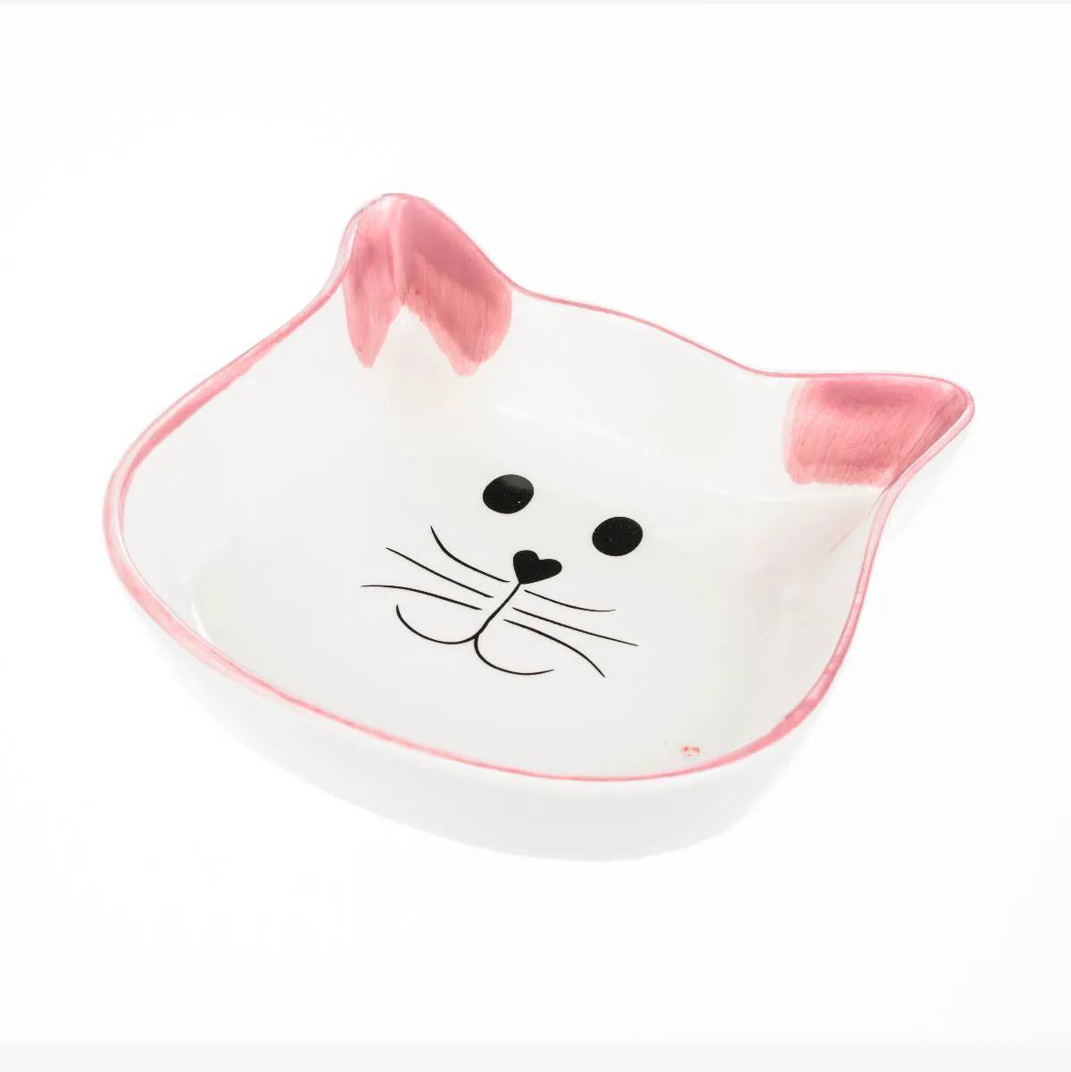 Миска для кошек керамическая, цвет белый с розовым. Оригинальный дизайн миски в форме кошачьей мордочки. Размер: объем - 200 мл.