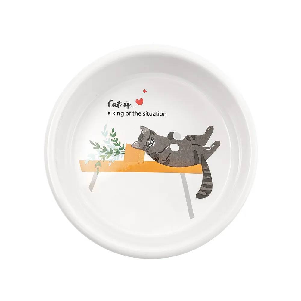 Миска для кошек белая керамика с рисунком объемом 200 мл, диаметром 11 см.