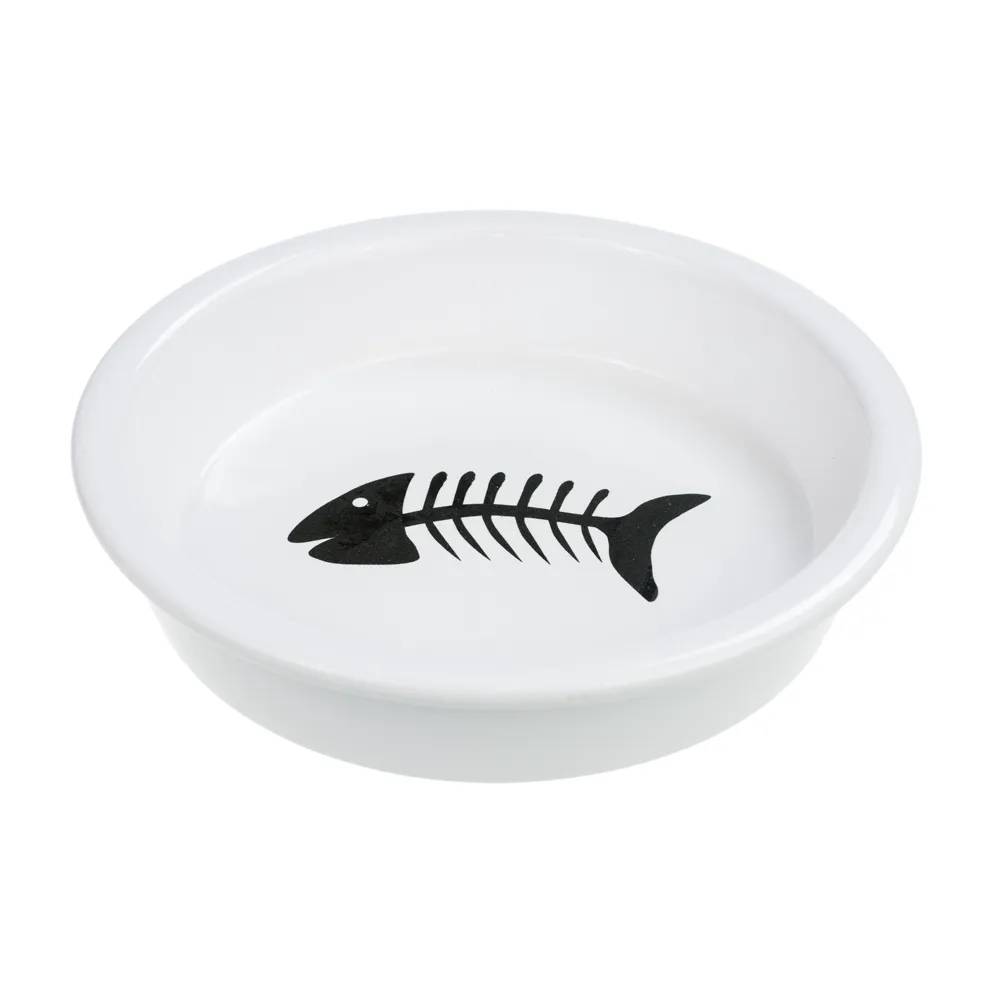 Миска для кошек с рыбкой белая керамика, диаметр 14 см.