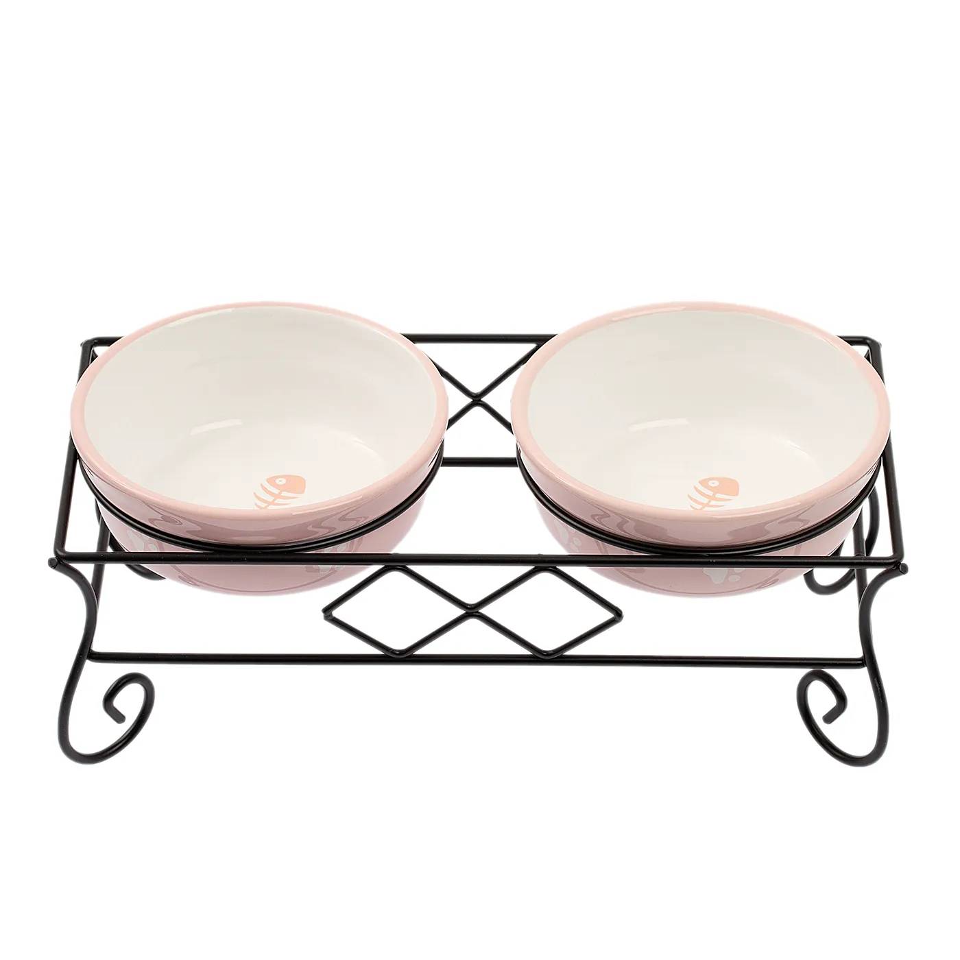 Миска двойная с лапкой розовая керамика 12,5 см.