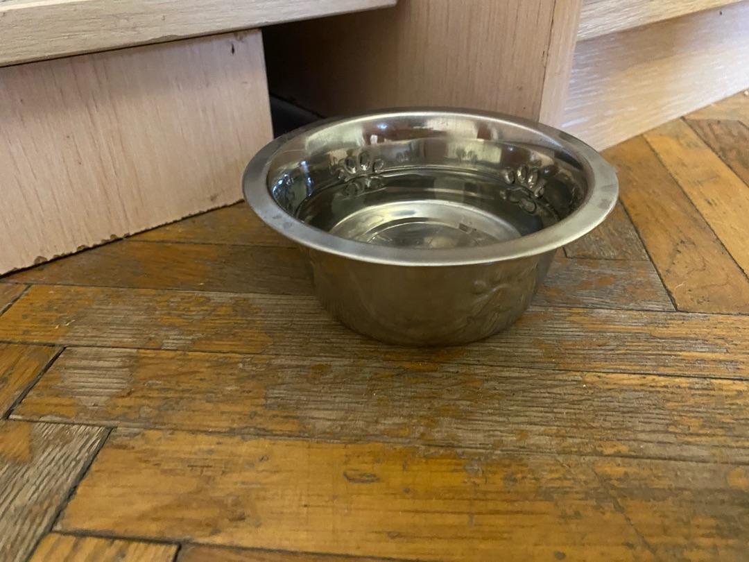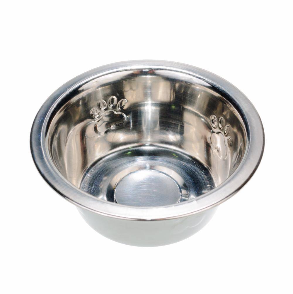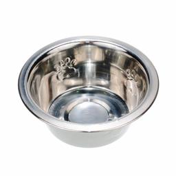 - Миска декорирована стильной гравировкой в виде животных следов, а звонкий металл всегда сообщит о том, что вашему питомцу пора подкрепиться.