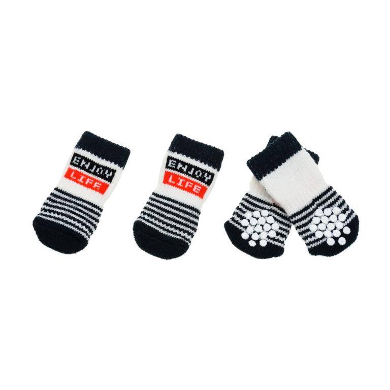 Petmax Носки черные Enjoy Life - яркий и теплый аксессуар для вашего питомца, который согреет во время прогулки, защитит от возможных порезов.
