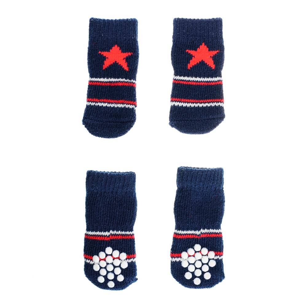Petmax Носки синие со звездой как для питомцев-девочек, так и питомцев-мальчиков. Они изготовлены из качественного и теплого текстиля, поэтому обутая в них собачка будет защищена от холода, а также порезов. В отличие от ботинок, носочки более легкие и позволяют домашнему любимцу чувствовать рельеф поверхности, на которую он ступает. Представленная модель не только увеличит комфортность прогулки для песика, но и сделает его еще более милым.
