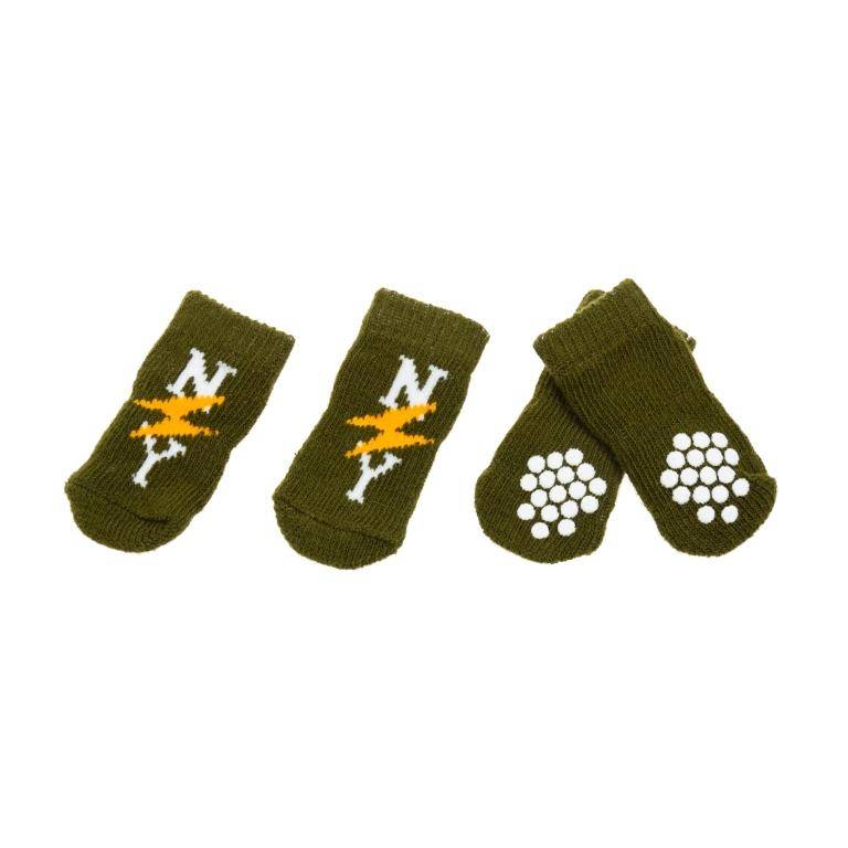Такая модель подойдет для серьезных питомцев, болотный цвет смотрится солидно, при этом носки успешно справляются со своей основной функцией. Носочки защитят лапки любимца от холода, острых камней и веточек во время прогулки. Плотная резиночка обеспечит фиксацию носка.