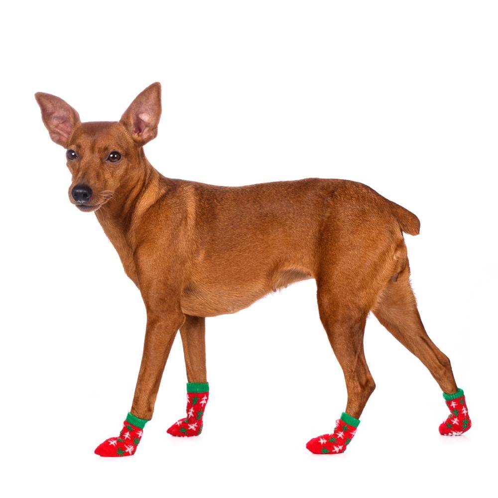 Стильные и тёплые носки в новогодней тематике от Petmax украсят и защитят лапки вашего питомца в холодное время года. Предотвращают скольжение и защищают полы и мебель.