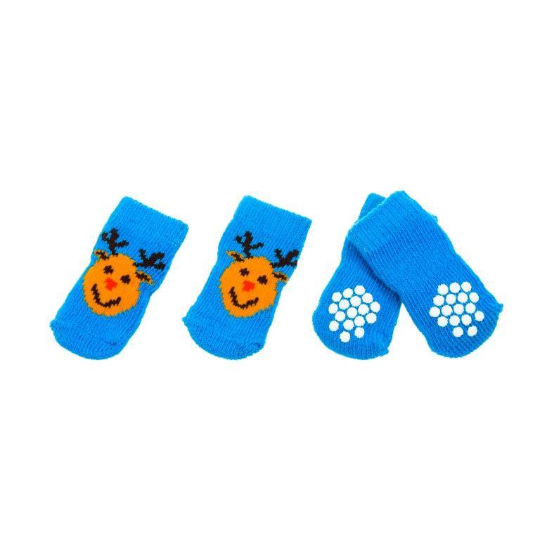 Petmax Носки синие с оленем являются классической зимней моделью. Бегающий по дому песик в носочках не замерзнет, даже если интенсивность отопления оставляет желать лучшего. Данная модель хорошо поддается стирке, отличается износостойкостью. Она может быть использована не только внутри помещения, но и во время уличных прогулок.