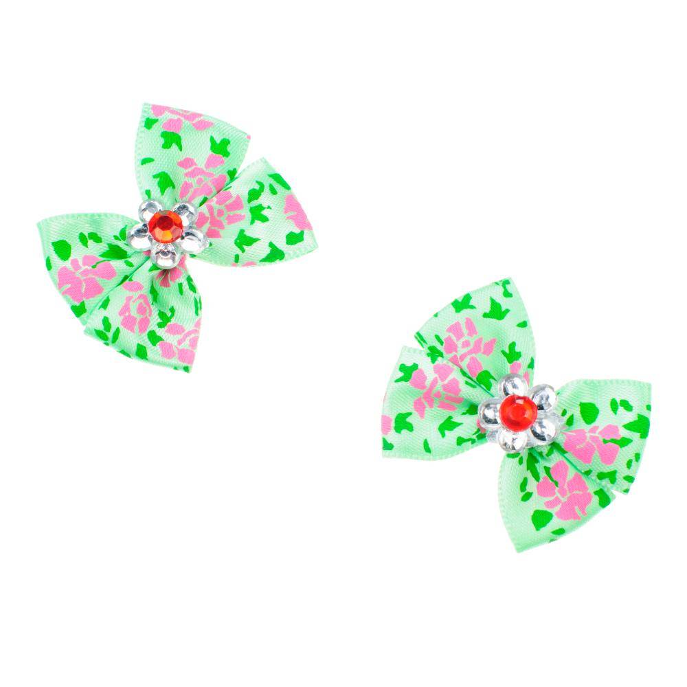 Petmax Бантик зеленый с цветочком 2 шт предназначены для ухода за шерстью питомцев, выполняют и практическую, и декоративную функции при уходе за питомцем. Часто, в силу особенностей роста шерсти, собакам необходимо убирать часть волос с мордочки. Тут вам на помощь придут резиночки и заколки, которые не только помогут убрать волосы, но и украсят вашу собаку. Особенно это важно для собак мелких пород с длинной шерстью. При выборе бижутерии ориентируйтесь на размер собаки, длину шерсти, окрас.