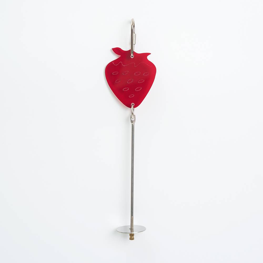 - Держатель украшен фигуркой клубники.