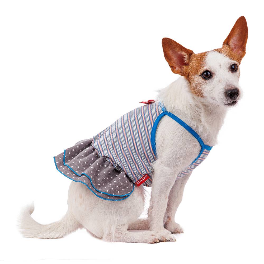 Petmax Платье для собак, M, голубое с бантиком (девочка)